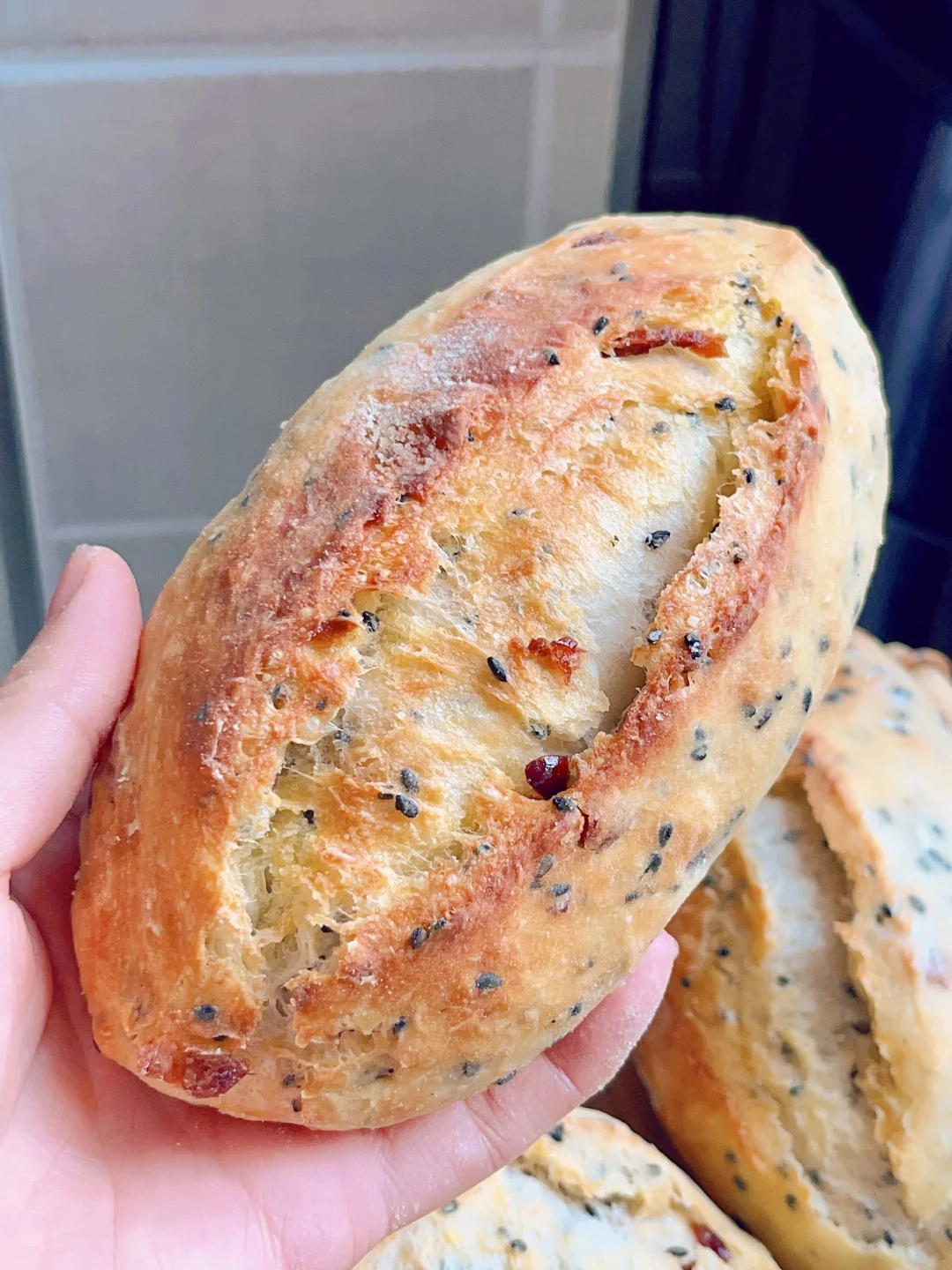 外酥里软,不用揉面不用手套膜就可以做的蔓越莓欧包,做一次吃一周孩子的早餐超省事