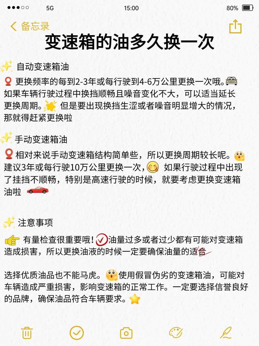 但是要出现换挡生涩或者噪音明显增大的情况,那就得赶紧更换啦。