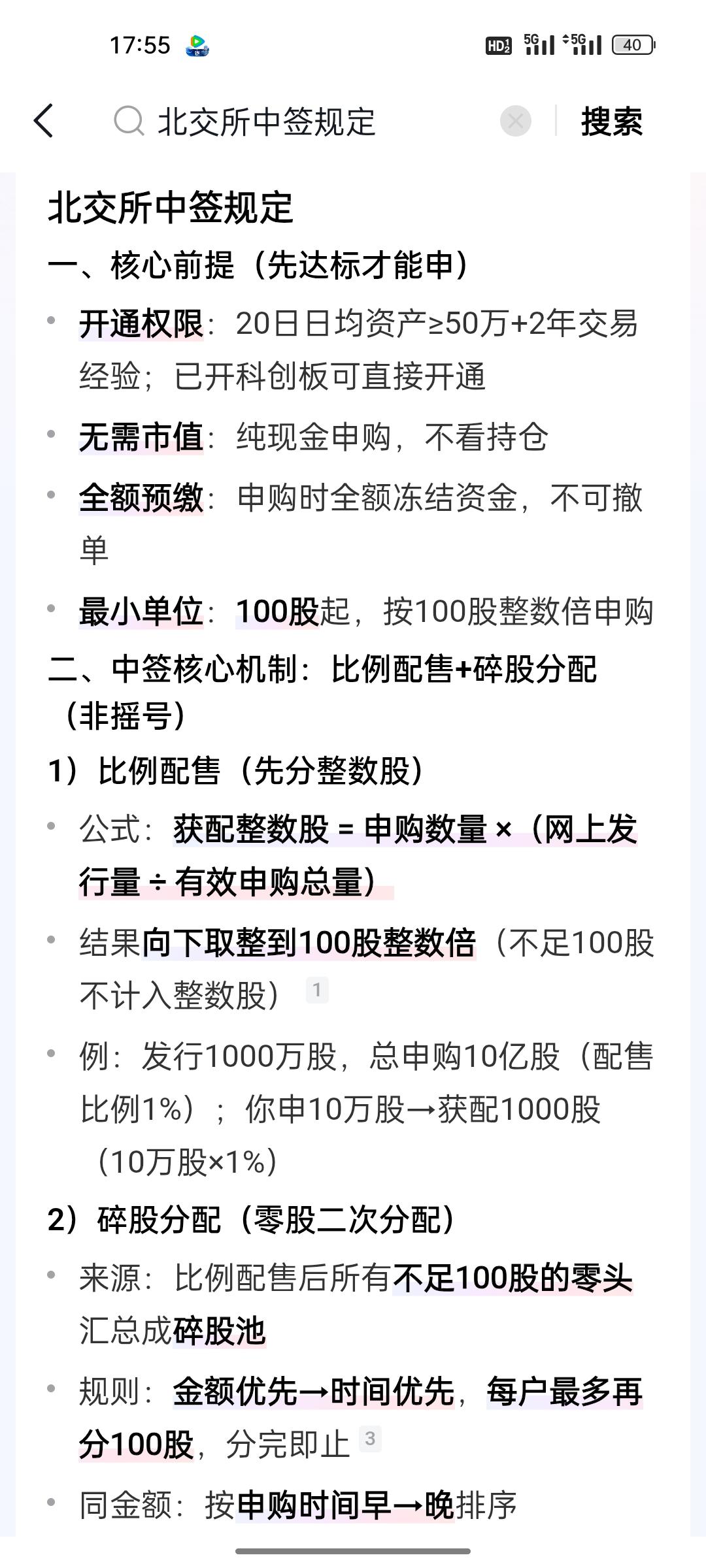 原来,北交所根本不搞什么配号抽签!它是按你申购的资金(股数)在总资金里的占比,直接排队切蛋糕——谁钱多谁分100股,分完为止。说白了,这就是一场资金实力的硬碰硬,跟运气半毛钱关系都没有。