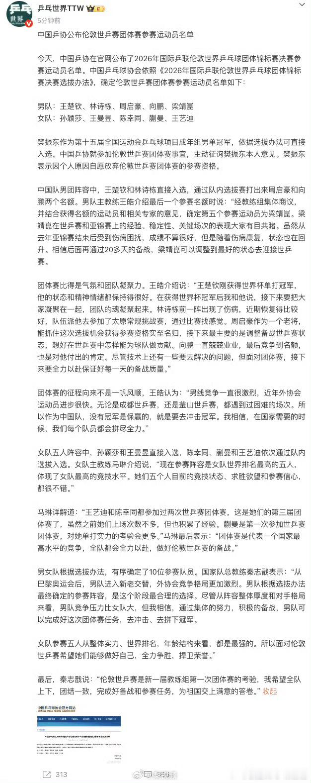 伦敦团体世乒赛名单基本确定棘手的问题也来了国乒女队是基本确定了,五人名单