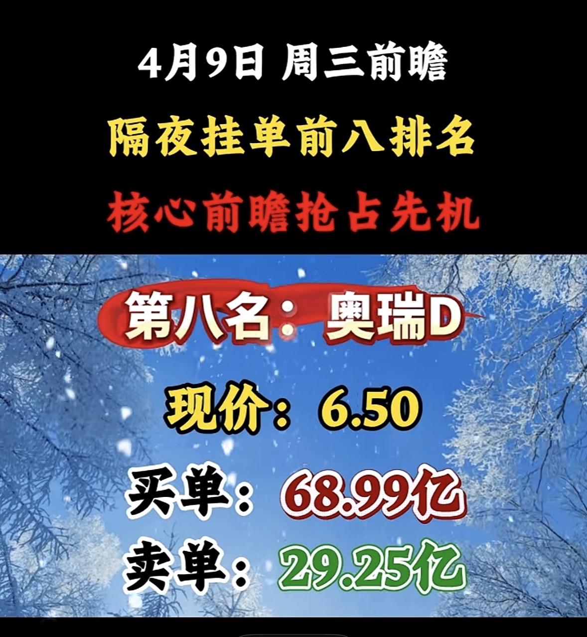 到了3月9日,情况又不一样了。拓维信息以45.93亿买单领先,现价39.05;协鑫集成买单41.76亿紧随其后。不同时间,上榜的股票和挂单金额都有变化,这也反映出市场的动态。关注隔夜挂单前八名,说不定就能抓住投资的好机会。