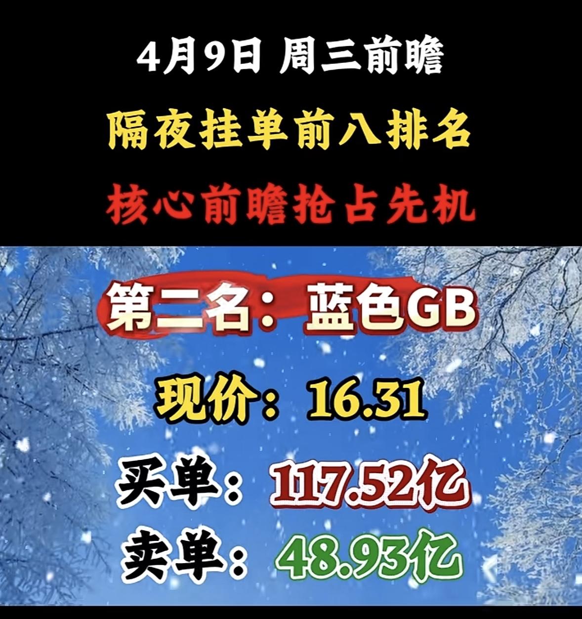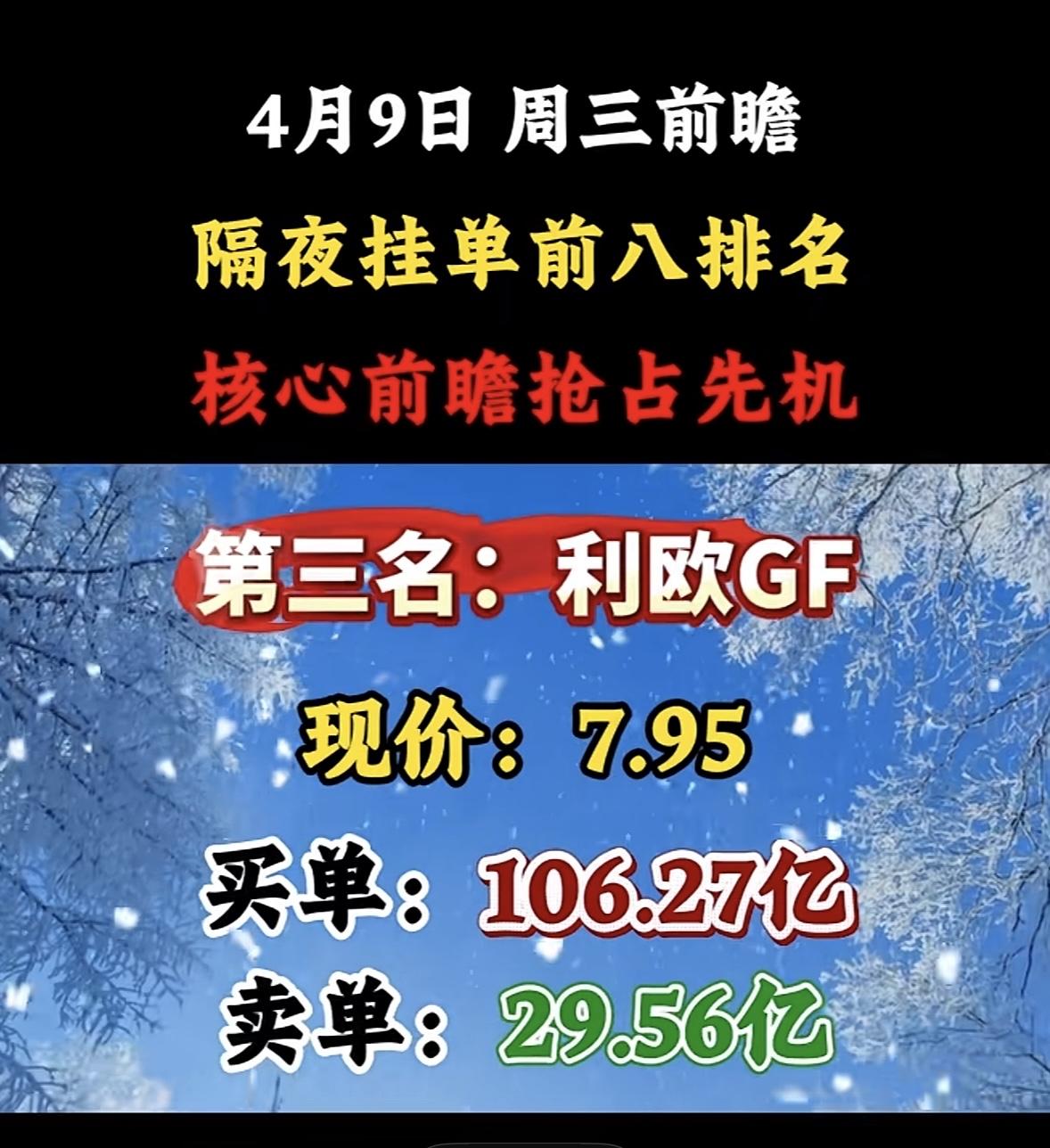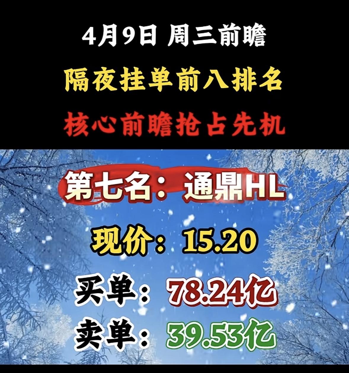 隔夜挂单前八名可太有看头了,能帮咱抢占先机。1月28日暗盘隔夜挂单,湖南黄金以33.89亿挂单居首,现价27.80;拓日新能排第二,挂单31.38亿,现价6.61。还有天奇股份、三维通信等也都在榜单上。