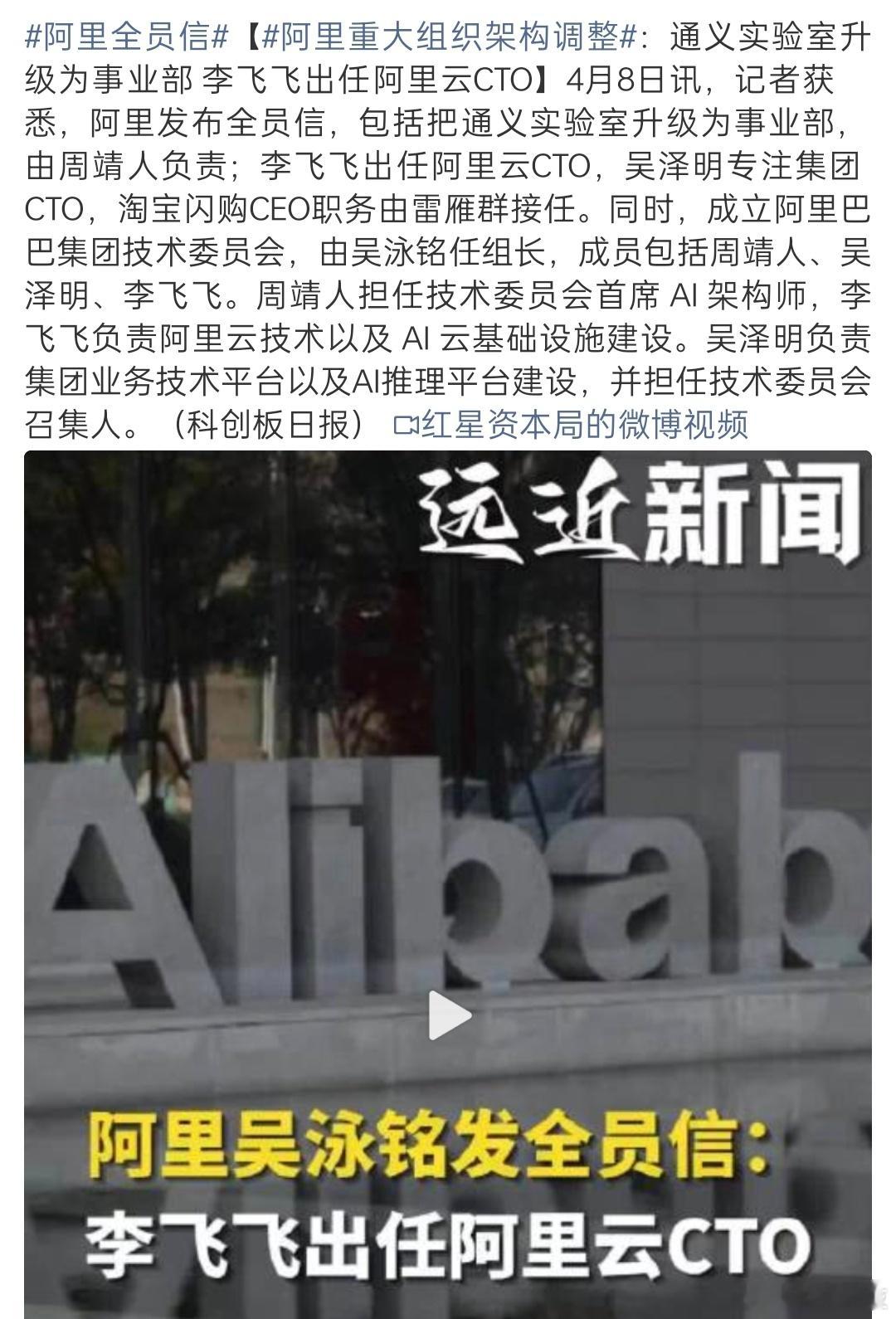阿里又搞大动作了!CEO吴泳铭刚刚发内部信,官宣AI组织大调整! 最重磅的两个变化:一是成立集团技术委员会,吴泳铭亲自当组长,周靖人、吴泽明、李飞飞三大技术大佬组队,这配置最高规格了吧!二是把通义实验室升级成通义大模型事业部,由周靖人负责,这是要集中火力搞大模型啊! 说真的,阿里今年在AI上太拼了!3月刚成立ATH事业群,紧接着Qwen 3.6 Plus就登顶OpenRouter全球调用量榜首,单日调用破1.4万亿Token,创了世界纪录!这次调整明显能够感觉到阿里这是要聚合所有优势资源,要在AI领域干出一番大事业啊!