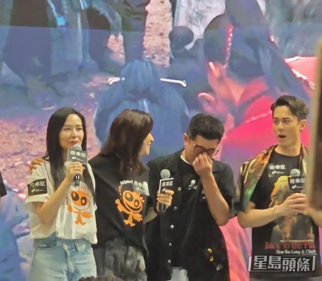 为答谢粉丝,众人带领全场大合唱《天命最高》,掀起超强回忆杀。古天乐一度感动落泪,宣萱轻拍他肩膀安慰,郭羡妮也靠在宣萱肩上哭。