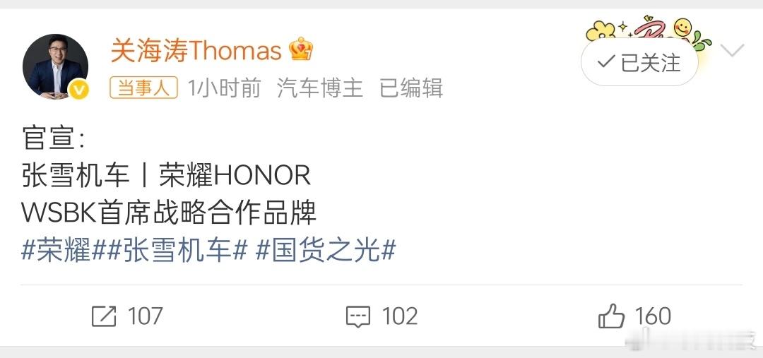 荣耀张雪机车战略合作荣耀这一波反应很速度啊,这简直就是技术偏执狂的惺惺相惜啊!