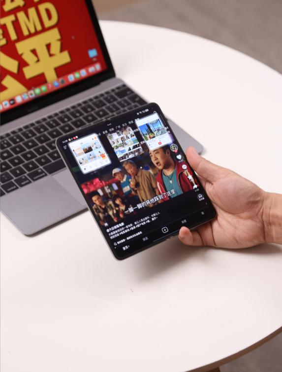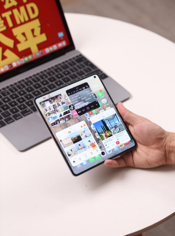 我拿的原钛色,磨砂后盖很润不沾指纹,折起来跟直板机厚度差不多,单手完全没问题。铰链展开要用力但各个角度都能悬停,做工严丝合缝。ColorOS 16里折叠屏适配给得特别自由,比如B站你想三列开阔就选大屏模式,想双列瀑布流就切回去