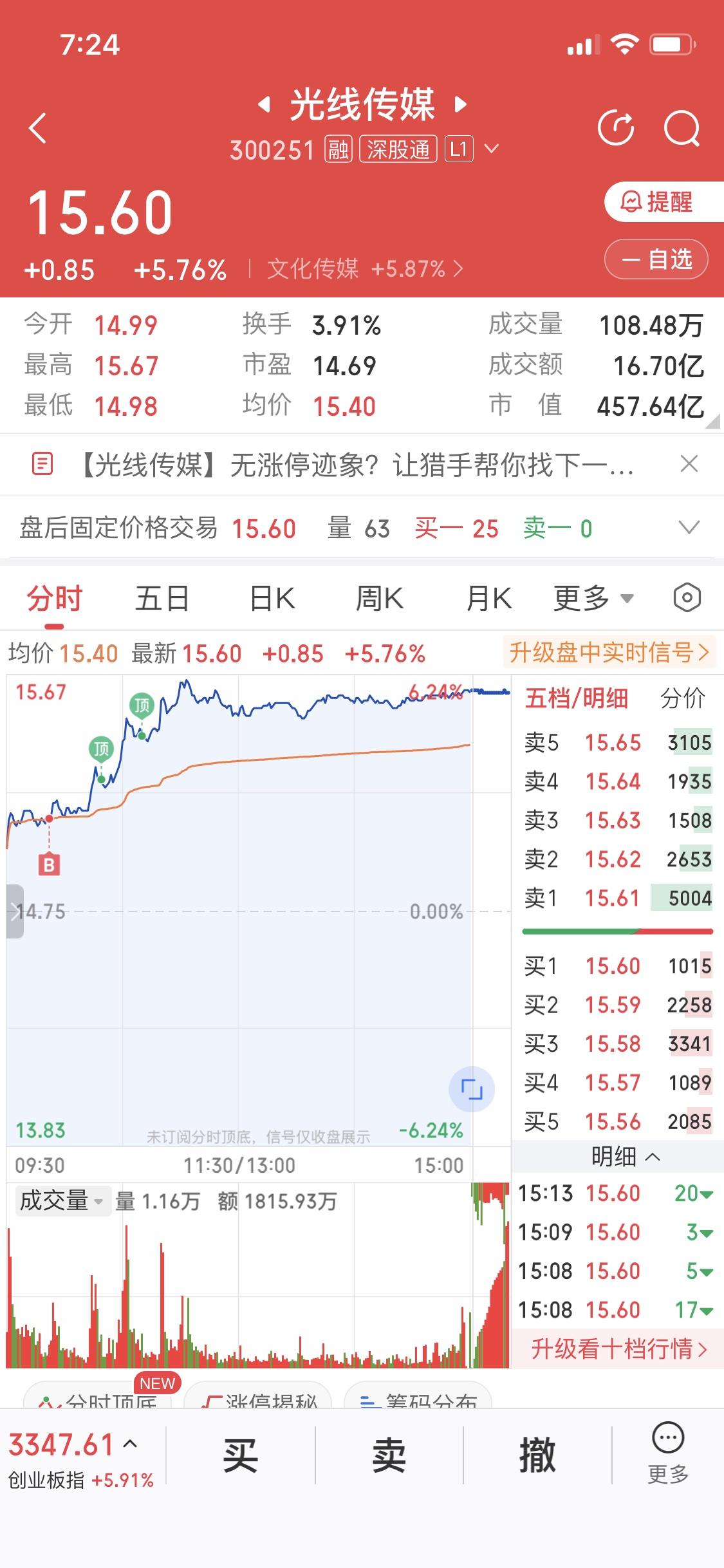 昨天我把合富卖了,转头入了光线传媒。好多朋友留言说,今年五一光线传媒没作品,没业绩和收益。但炒股不就是炒预期嘛,利好一兑现就成利空了。就像有些公司,股价一直涨,业绩增长发布当天股价就跌,然后开始阴跌。