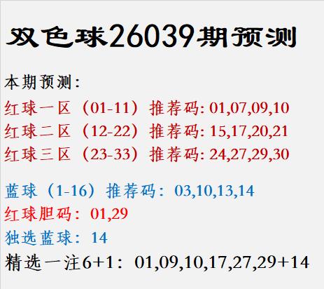 双色球26039期预测 本期预测: 红球一区(01-11)推