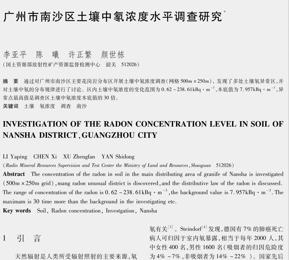 南沙人对于”氡“的关注,最早应该是来自一份国土资源部的《广州市南沙区土壤中氡浓度水平调查研究》,内容就不具体说了,大家可以自行去搜索了解。