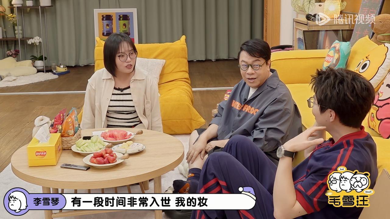 采访的时候,李雪琴没有化妆,镜头晃了一下,她素面朝天的。李雪琴说那时候她很松弛,后来就变了,开始戴各种发夹、烫头、化妆,好像跟这个世界“格格不入”一样。
