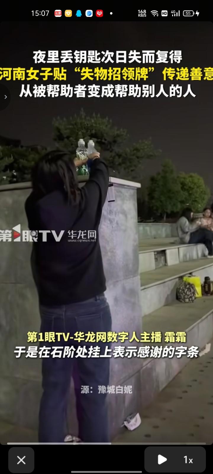 3月29日,河南郑州。女子晒视频称,在广场骑行,晚上回家后发现车钥匙丢了,立刻返回寻找无果。次日早上,她来到广场上寻找,竟然发现车钥匙被挂在石阶上,觉得非常感动。于是,她在石阶上挂上表示感谢的字条,还送出两瓶水。视频已发出,有网友找到挂钥匙的好心人,后续又当面对好心人进行感谢。