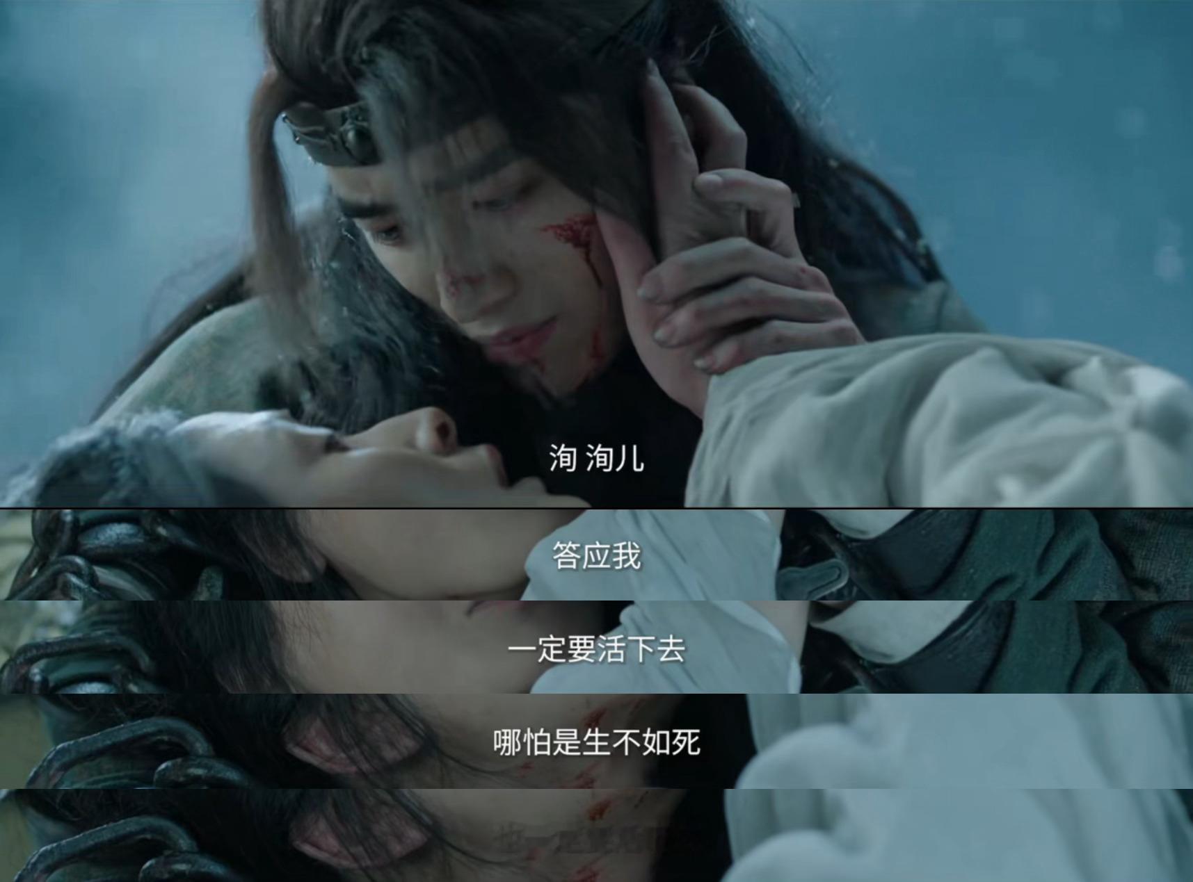 冰湖重生九幽台 看九幽台之前不知道什么叫真正的绝望。燕洵眼睁睁看着亲人一个个被烧成灰,母亲在眼前自尽,自己却被锁链摁在地上什么都做不了。张康乐把那种困兽犹斗的悲壮感演到了极致,挣扎到锁链勒破手腕也不肯认命。但九幽台之后,那个不认命的少年还是死了,活下来的是满身仇恨的燕洵。