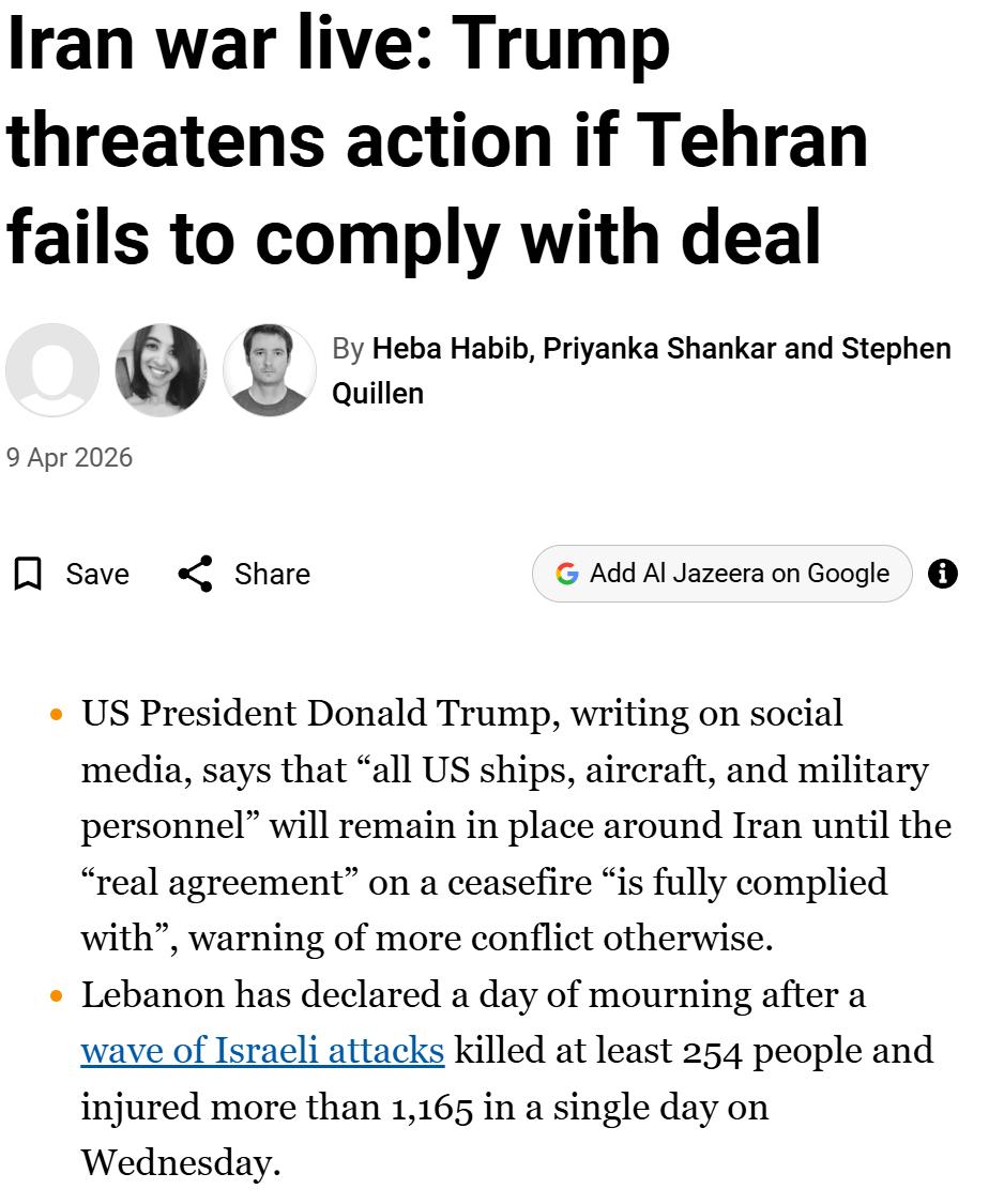 而以色列正在把黎巴嫩变成新的加沙,内塔尼亚胡公开表示要占领黎巴嫩十分之一的领土,昨天美国宣布和伊朗停火和谈,在调解人巴基斯坦总理公布的停火条件中,包括黎巴嫩在内的停火是必要条件之一,但是内塔尼亚胡表示拒绝,制造了黎巴嫩的“血腥一日”,杀死了至少254名黎巴嫩人,制造黎巴嫩伤员至少1165人。