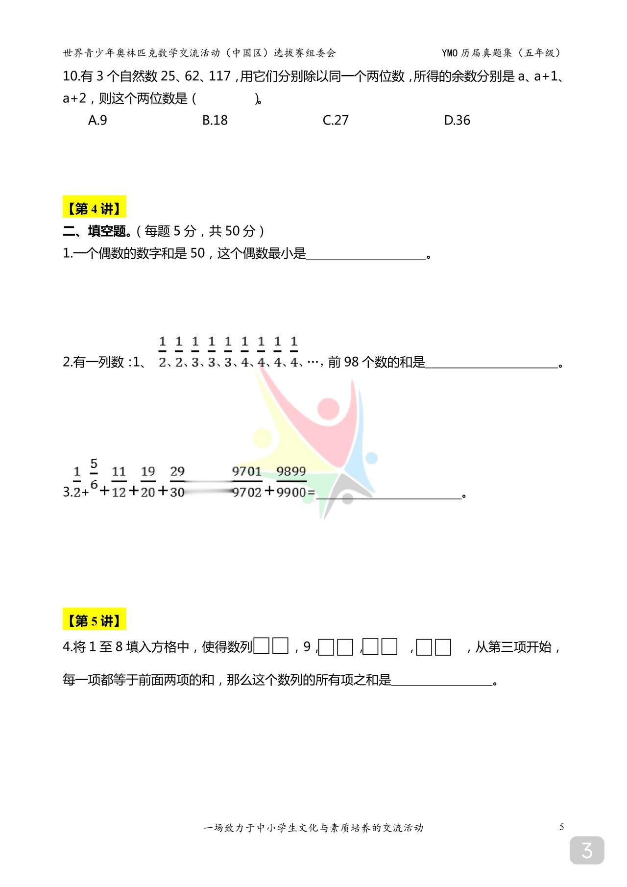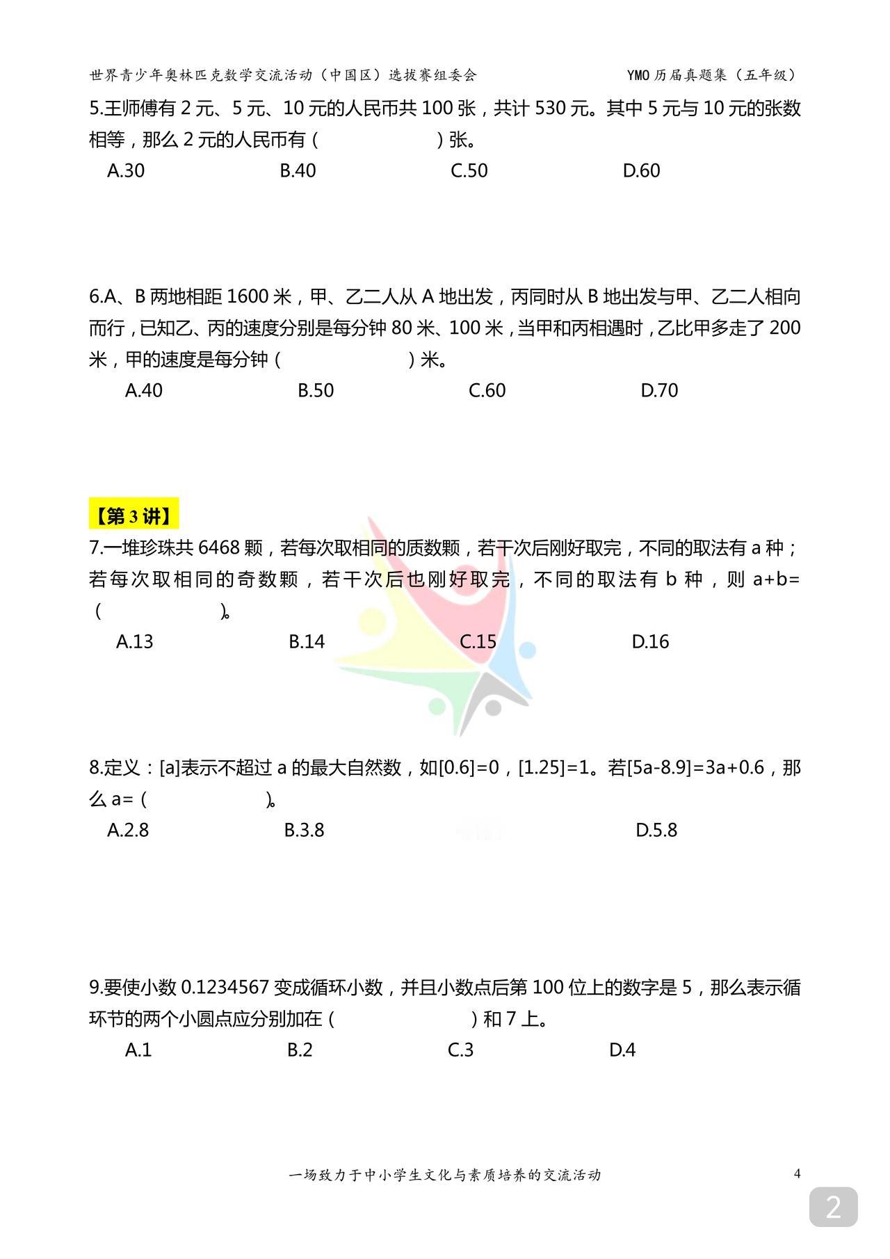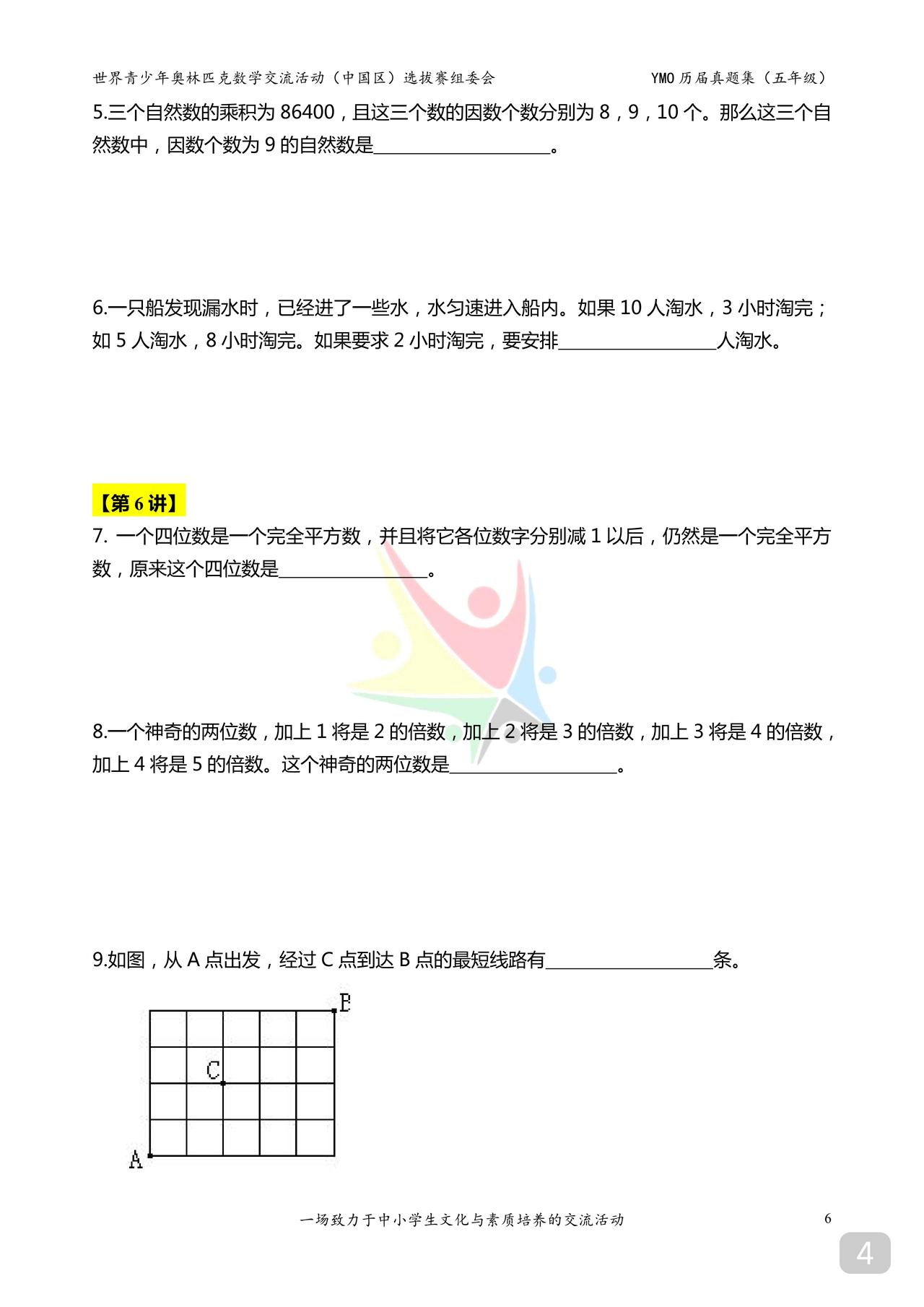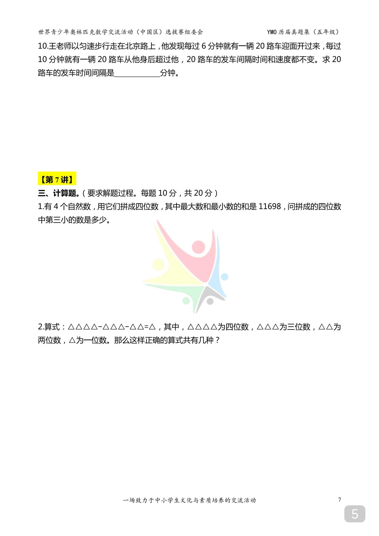 五年级YMO数竞试题 小学时间多 如果思维可以 就学点奥数