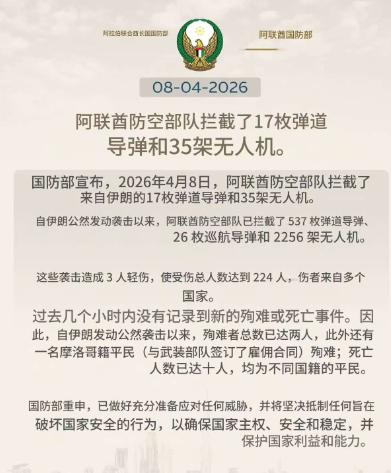 4月8日停火协议生效后,阿联酋空军轰炸了伊朗位于锡里岛和拉万岛的炼油厂,然后伊朗向阿联酋发射了17枚弹道导弹和35架无人机。阿布扎比哈布山天然气厂有2名阿联酋人和1名印度人受伤,迪拜拉响了空袭警报。