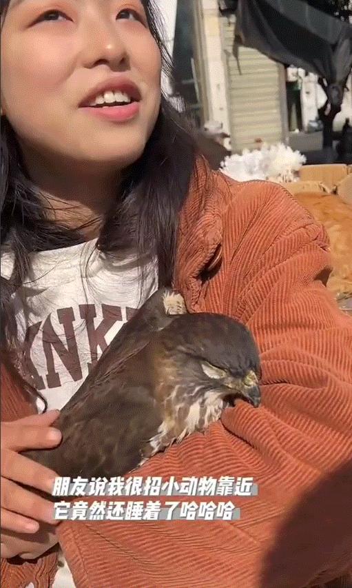 等大家知道,这是一只野生游隼,是主动飞到女子怀里的时候,都觉得特别神奇,纷纷感慨,这真是天大的缘分。