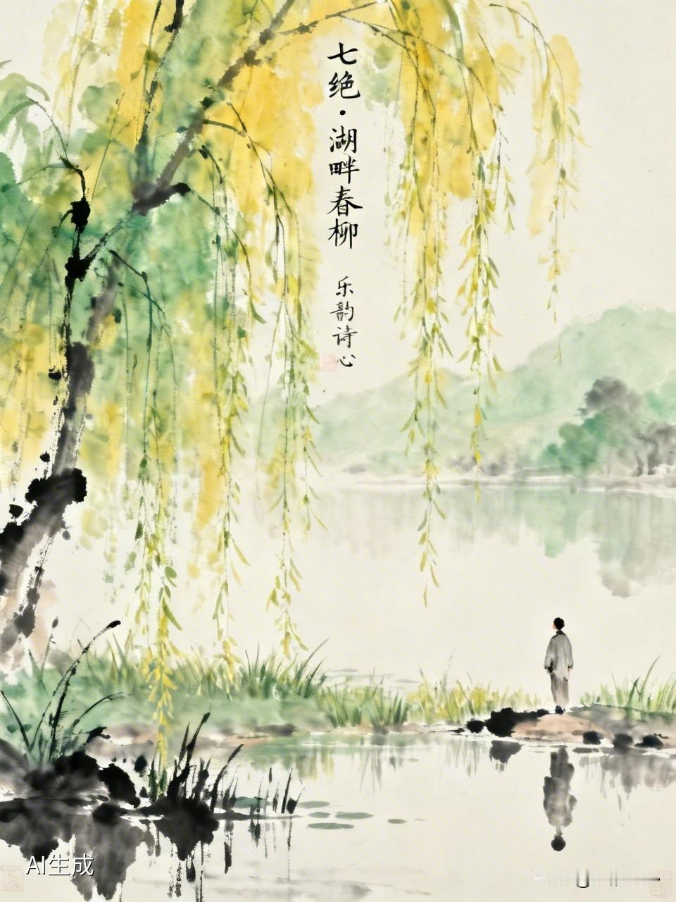 《七绝*湖畔春柳》乐韵诗心原创诗词:
