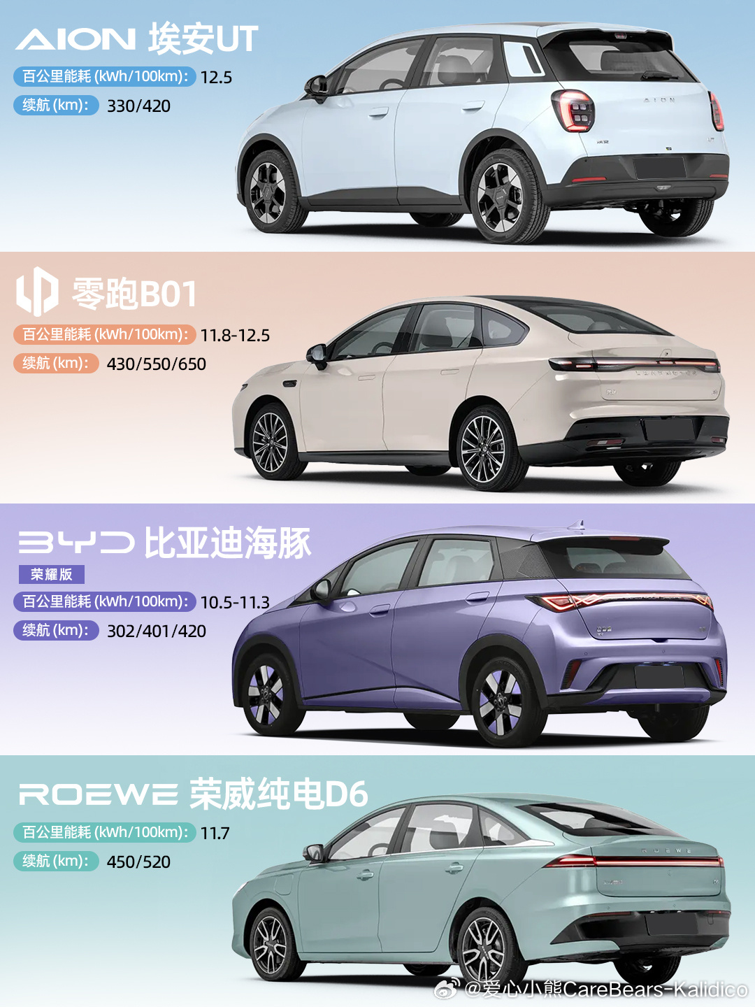10万级新能源轿车推荐速览:优先看埃安UT、比亚迪海豚荣耀版、零跑B01、荣威纯