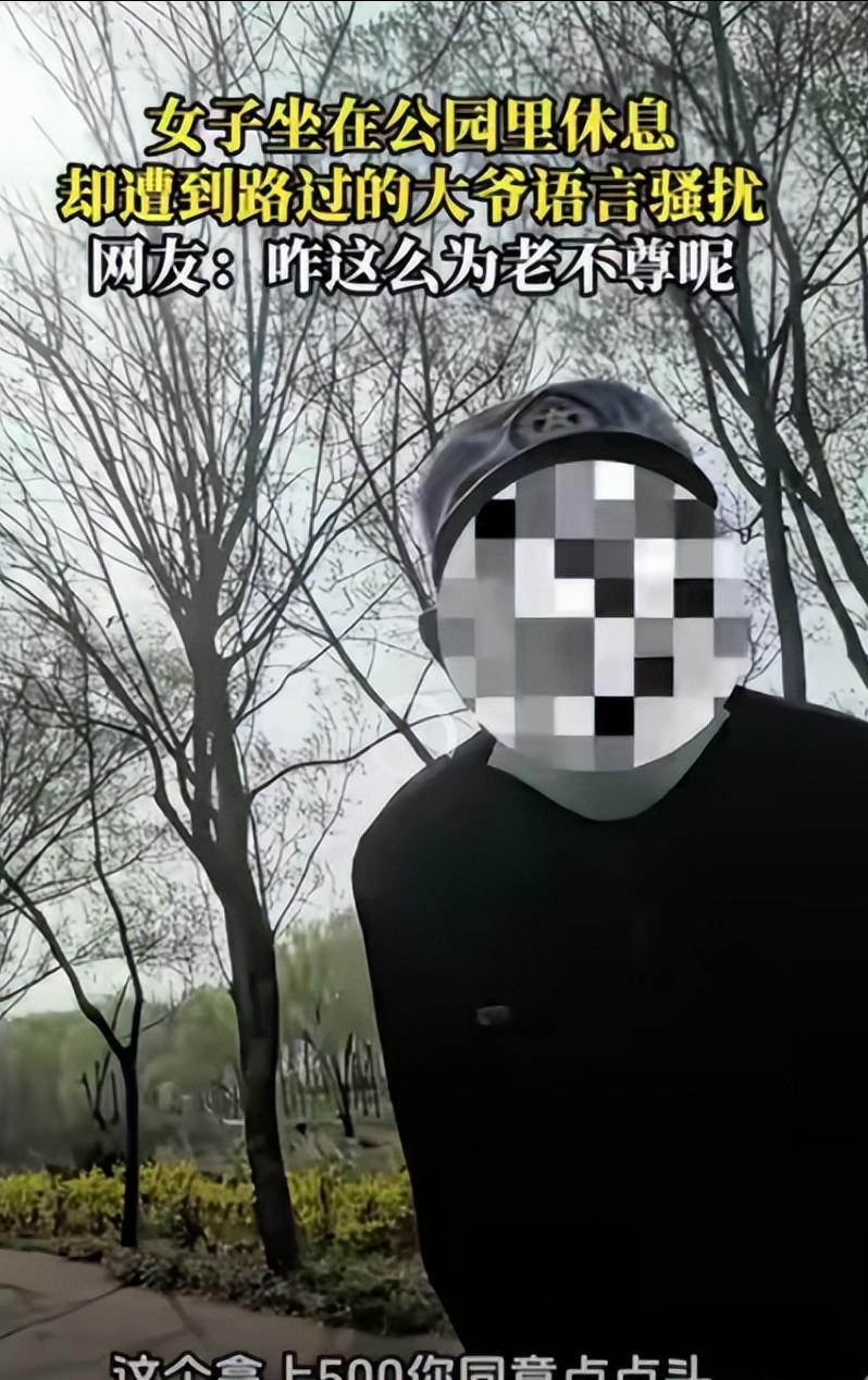 那天天气格外好,一位女子趁着空闲,拎着帆布包,在公园的长椅上静静休息,双手放在腿上,没招谁没惹谁。这时,一个七旬左右的老头慢慢走了过来,头发花白,背有点驼,穿着一件洗得发白的外套,径直凑到女子身边,身子几乎贴了过去,眼神浑浊又暧昧,直勾勾地盯着女子,看得人浑身发毛。没等女子开口避让,老头就慢悠悠地从口袋里掏出500块钱,指尖沾着些许污渍,在女子眼前反复晃了晃,语气轻佻又油腻,还带着几分理所当然的恶心:“小姑娘,这500块给你,陪我耍耍,不费什么事,你要么点头,要么摆手,简单得很。”