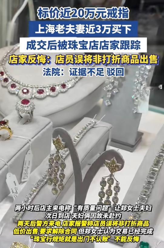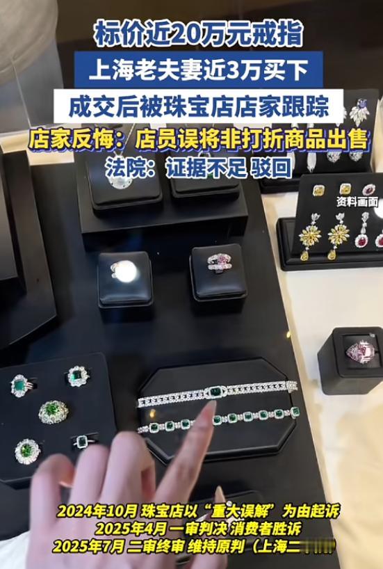 “玩不起别玩”!2024年7月,上海,一对老夫妻在相熟珠宝店,花2.96万买下标价近20万的红宝石戒指,结果两天后,店家称搞错了,这戒指不打折,双方协商不成,店主还去跟踪围堵老人,最后珠宝店还把夫妻俩告上法院!网友:过分了!