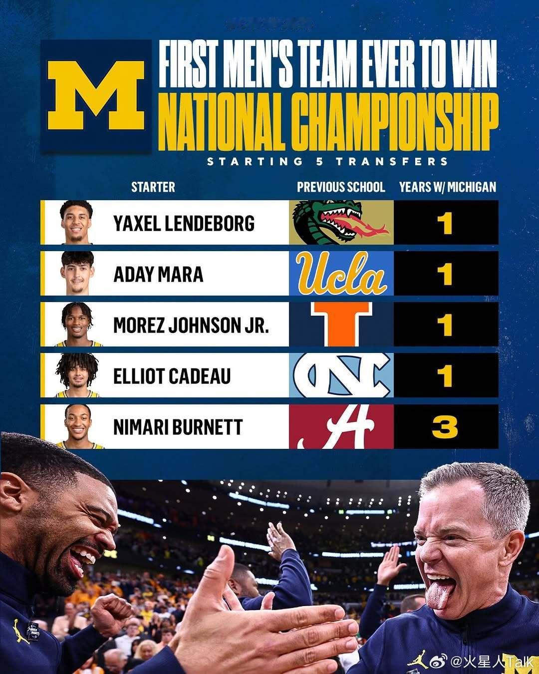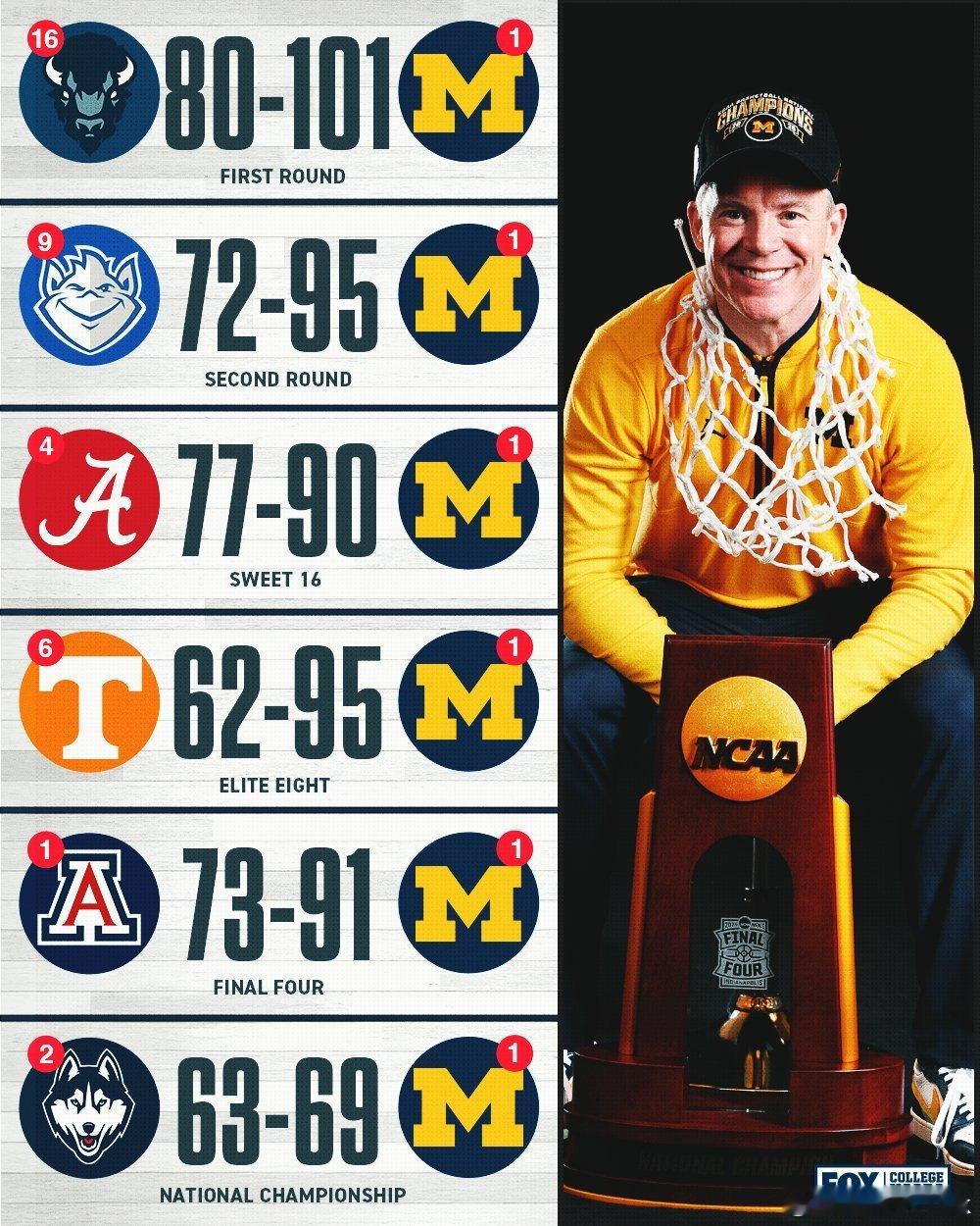 2025-2026赛季NCAA男篮疯狂三月 密歇根大学击败康涅狄格大学的决赛平均收视高达1828万观众观看,现场观众70720人。密歇根大学是首支首发球员都是转会球员的冠军球队,就连主教练Dusty May也才来到狼獾第二年。感觉今年的转会市场是最后疯狂,狼獾的成功有其独特性,模仿者最终能否走到最后都难说。