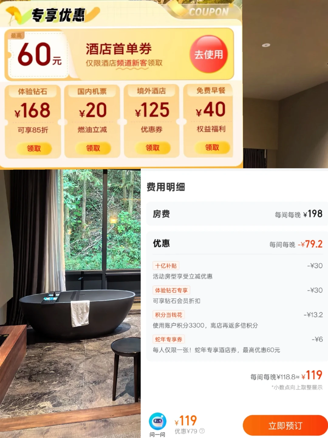 ✨Ps:偷偷要到了内部员工的专属优惠券!!!只有按照上述方法订酒店才会有额外优惠哦~