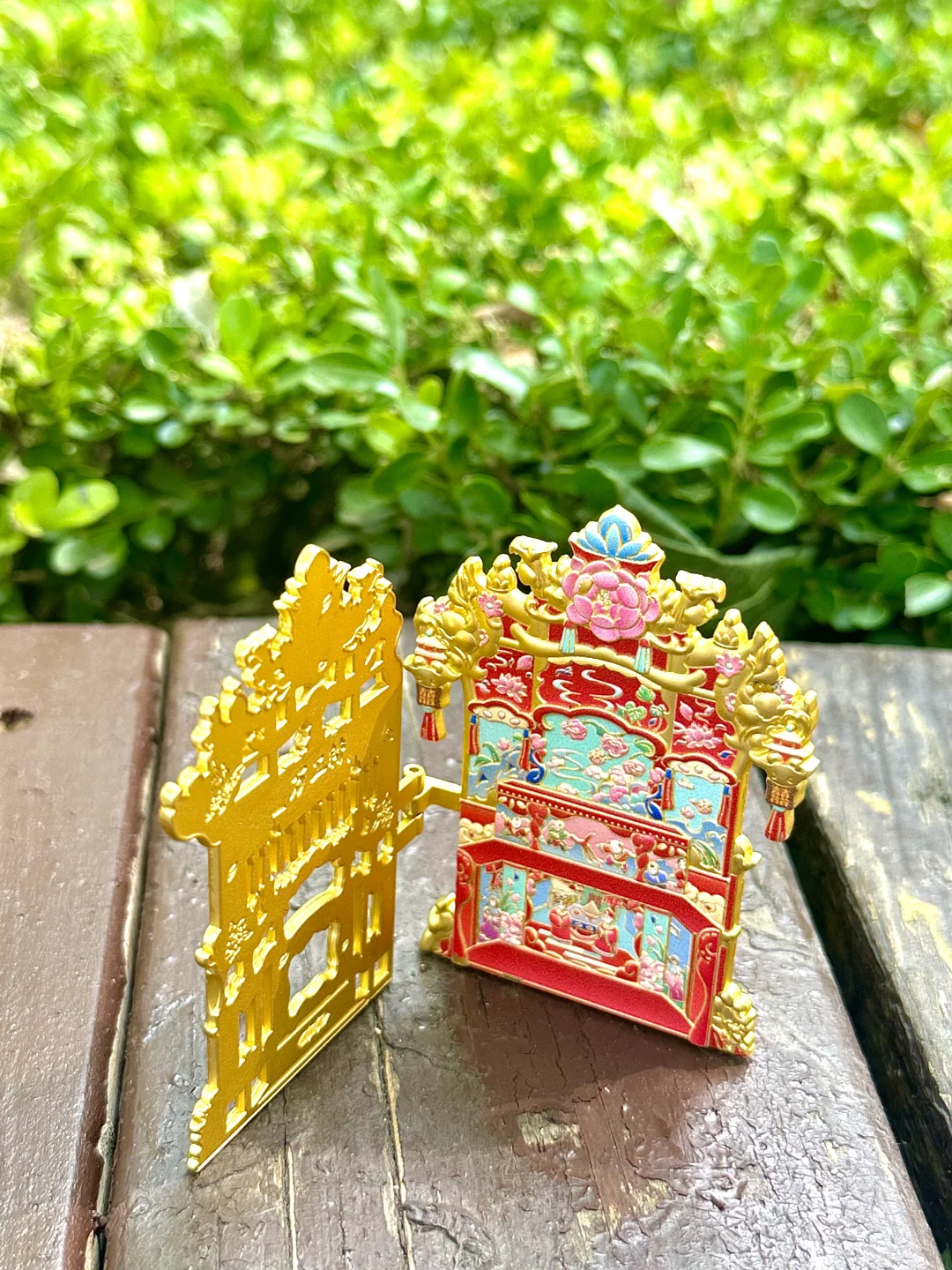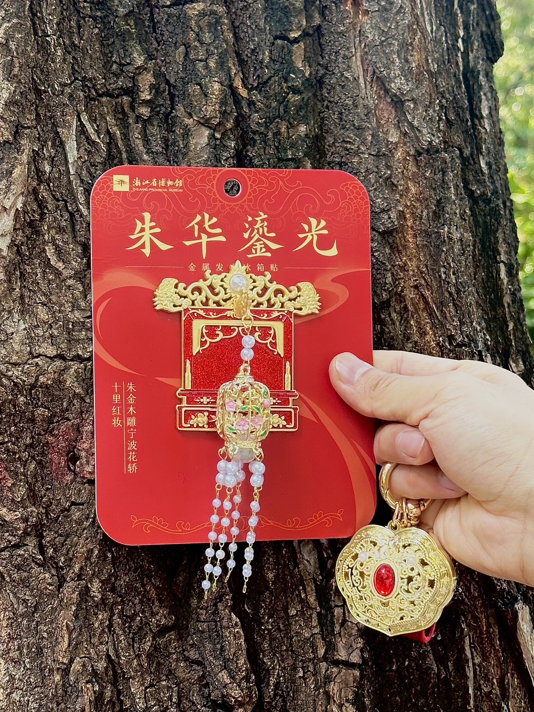 ✨朱金木雕宁波花轿:复刻了“天下第一轿”的细节,木雕的龙凤连鳞片都清晰,朱红漆色超正,摆着就像把浙博的“镇馆浪漫”搬回了家。