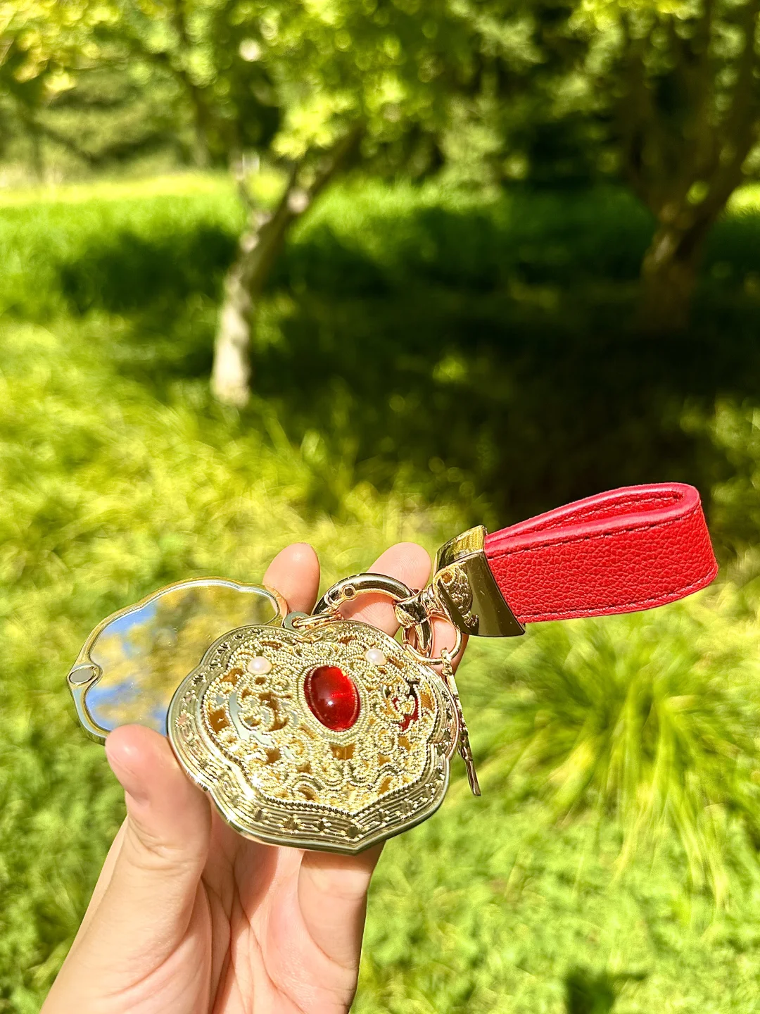 ✨嵌宝如意随身镜:镜身镶的“宝石”透着温润光,日常补妆超有仪式感,闺蜜见了直接要🔗。