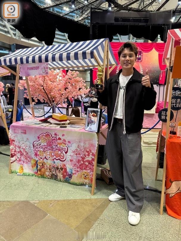 藝人何廣沛計劃今年與拍拖3年的圈外女友Sarah拉埋天窗,日前兩人趁復活節假期「夫妻檔」上陣,於數碼港商場內的市集擺設檔位,推廣寵物用品生意,現場更頒發多個寵物界獎項。何廣沛帶同愛犬到場,他與戴上口罩的Sarah表現合拍,既招攬生意,又執拾貨品,十分落力。愛犬全程乖巧聽話,憑可愛模樣為主人吸引不少顧客,相當抵錫。期間有顧客上前集郵,何廣沛亦表現親民,任影唔嬲,更有小朋友上前與他合照。其後他發現有記者在場時一臉愕然,定神後才接受訪問,反觀Sarah相對怕醜,急急躲於檔位旁避免出鏡。何廣沛表示:「因為今日有個3周年慶典頒獎禮,我哋品牌好榮幸都攞咗個獎呀!」