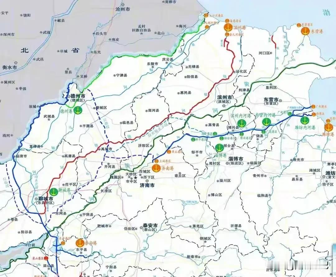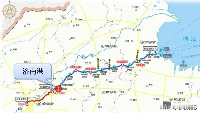 ③“小清河航道”工程:该航道全长169km,起点位于济南港,终点位于渤海湾畔的潍坊港,呈现东西走向,沟通江河通海的战略功能,2024年全线复航通行。目前山东正在积极谋划“小清河航道”与“京杭大运河山东黄河南段”互通的战略布局。