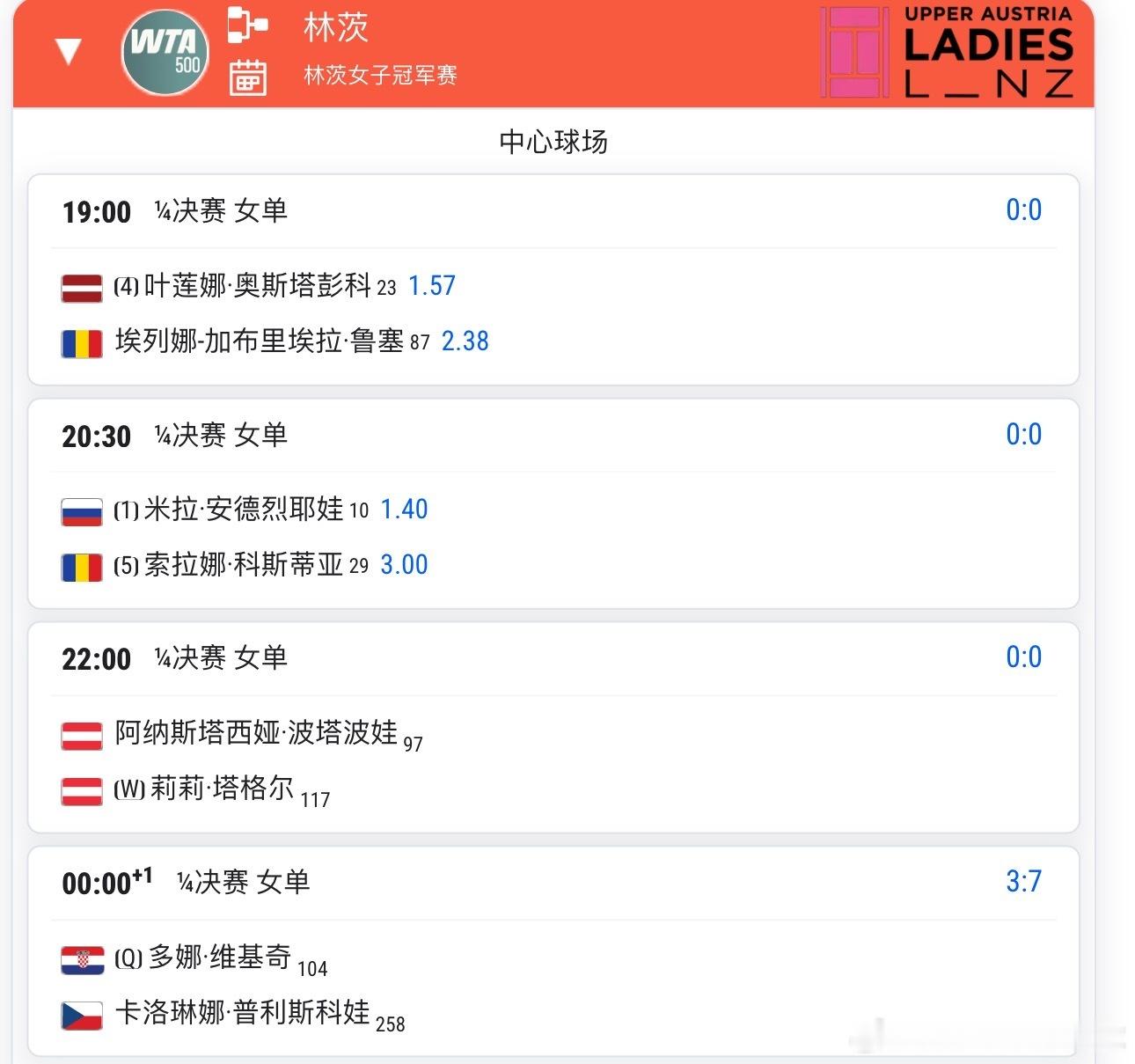 林茨的比赛安德烈娃和奥斯塔彭科争取会师半决赛,周末比赛真精彩哦wta