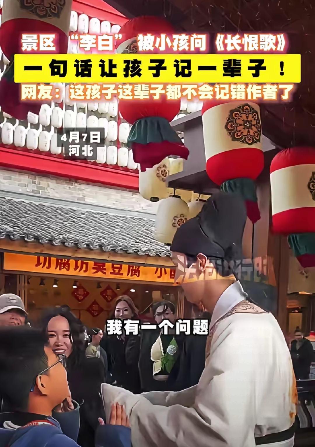 景区李白被娃问懵,这堂课比补课管用100倍。 河北景区这一幕直接火出圈,小男