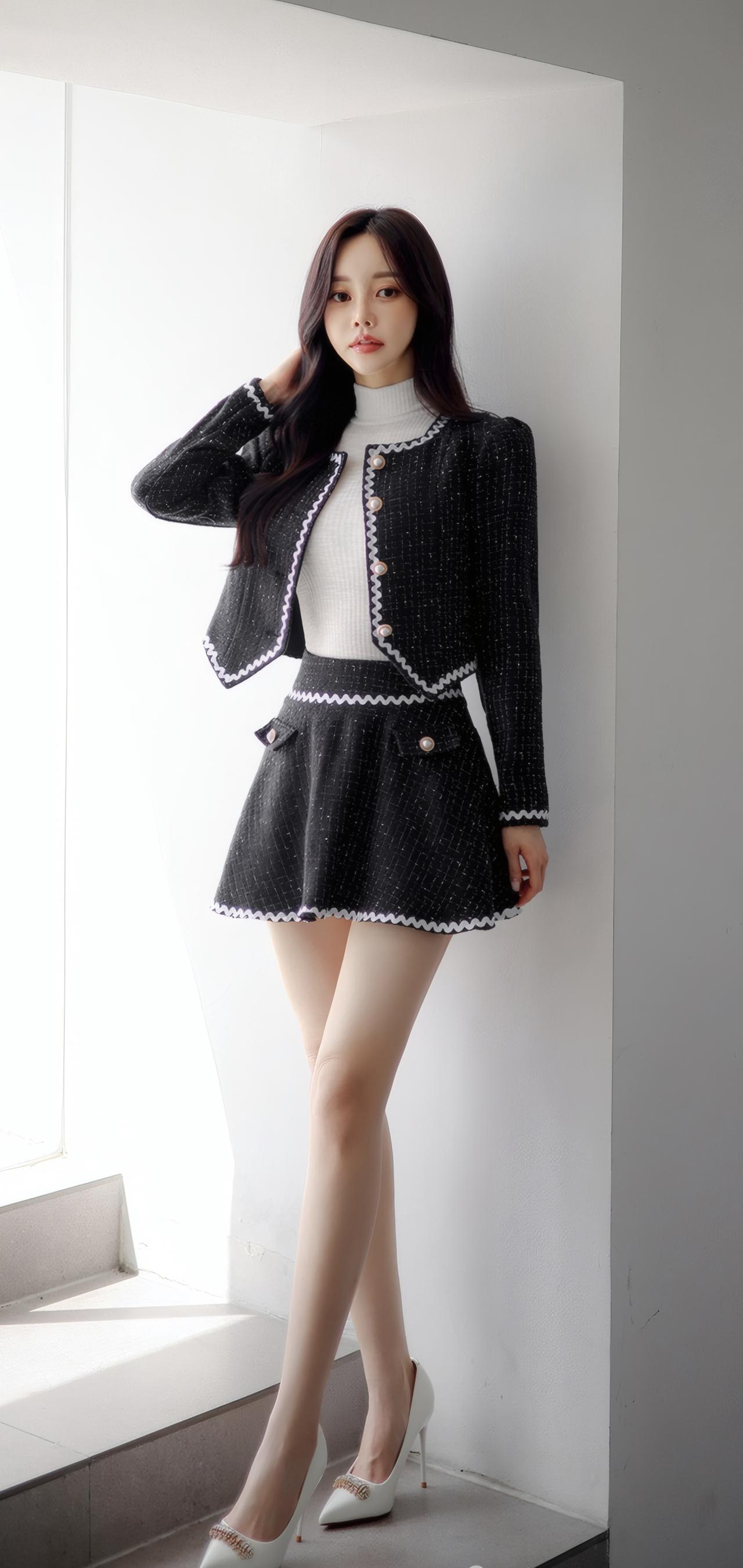 周雨彤黑色短裙优雅大气