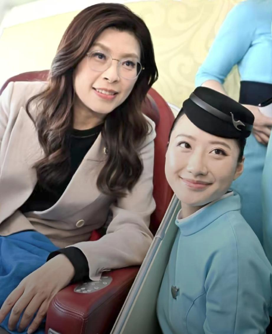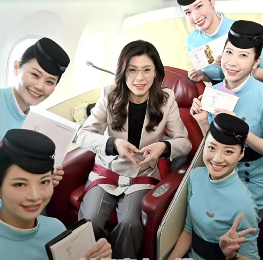 空姐们簇拥着自己的偶像,坐在中间的郑丽文如同熠熠闪光的大明星。