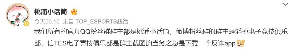 TES小话筒也在凌晨果断发声:信TES电子竞技俱乐部是群主截图的当务之急是下载一个反诈app