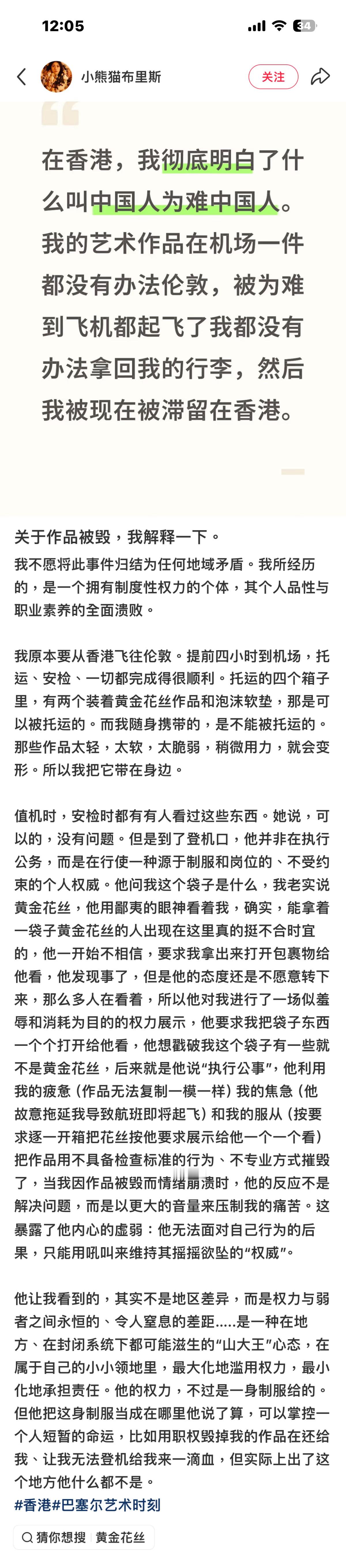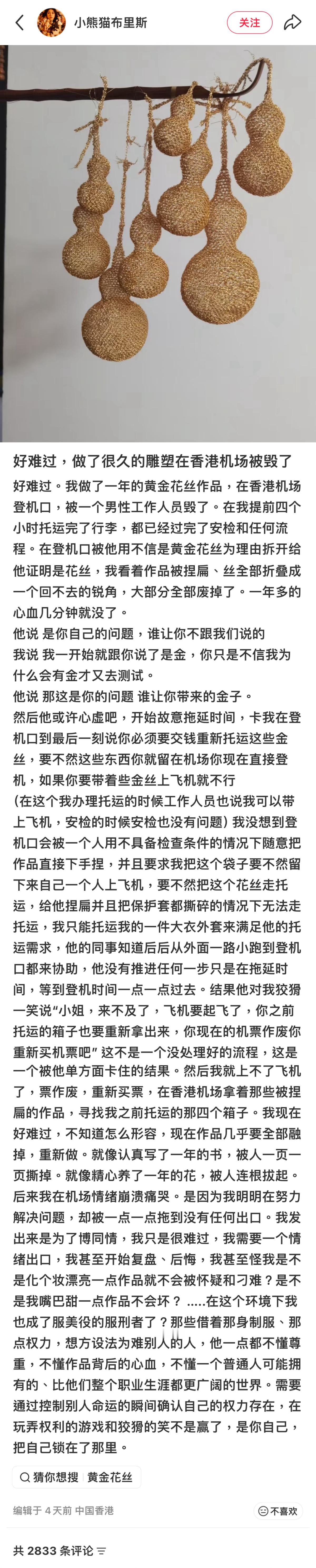 毁坏乘客100多万的物品,又故意卡她不让她登机,拿一个沙琪玛作为第三件行李这种烂借口香港机场这是什么黑社会帮派吗?港机场员工蓄意损坏大陆旅客百万黄金作品