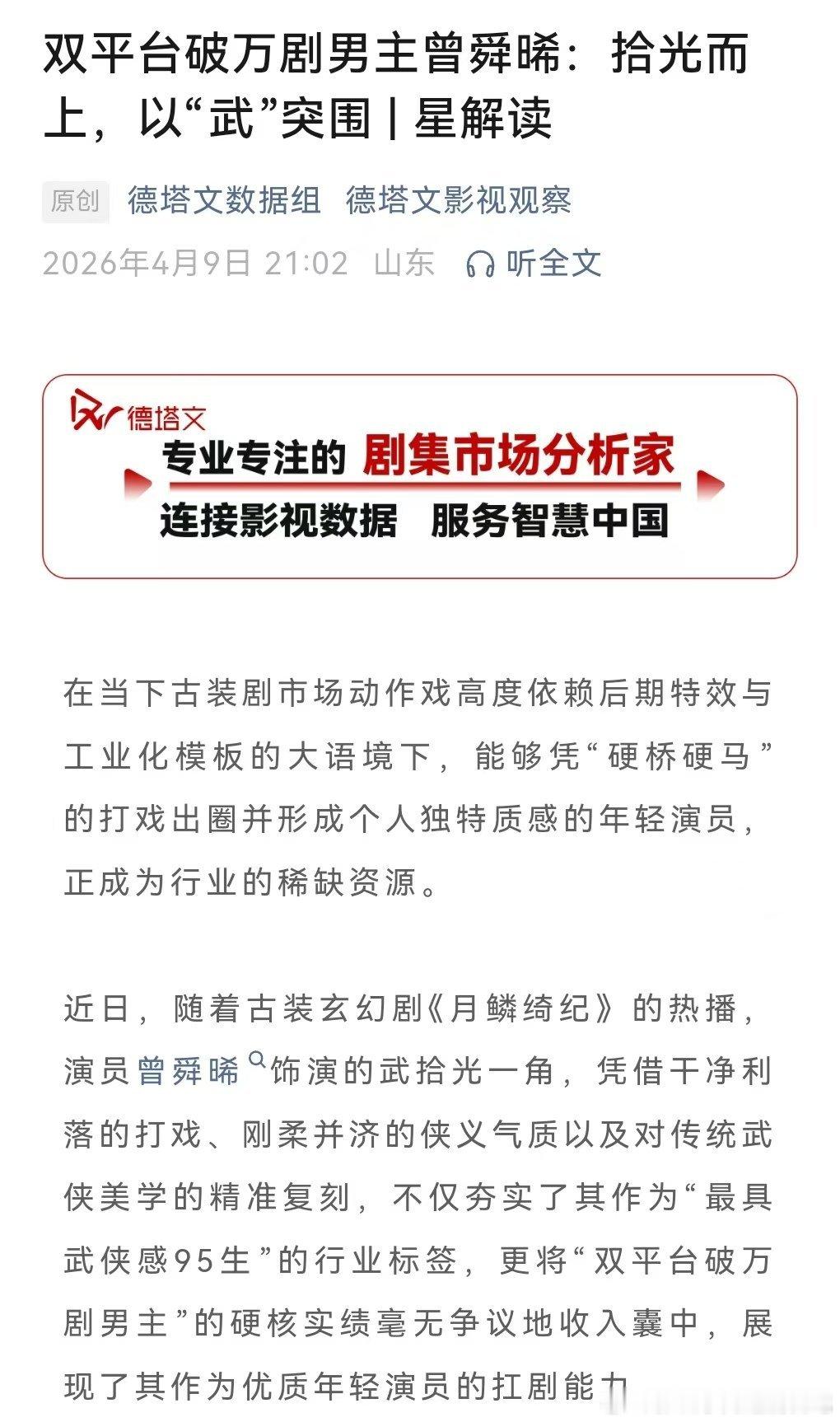 德塔文谈曾舜晞德塔文谈曾舜晞《月鳞绮纪》武拾光打戏又帅又燃,每一招都好扎实!一路走来武侠角色没少演德塔文谈曾舜晞