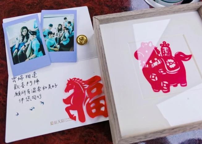 在飞机上,空姐还特意给郑丽文送上了红色的剪纸和一张手写的小卡片,上面印着“欢喜斗阵”几个字,这种地道的闽南语问候,一下子就把两岸的距离拉近了不少。