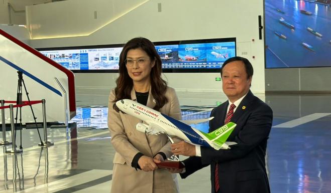 在看国产大飞机的时候,接待规格也挺高,中央台办的宋涛主任全程陪着,商飞的董事长亲自给郑丽文讲解C909、C919这些机型。