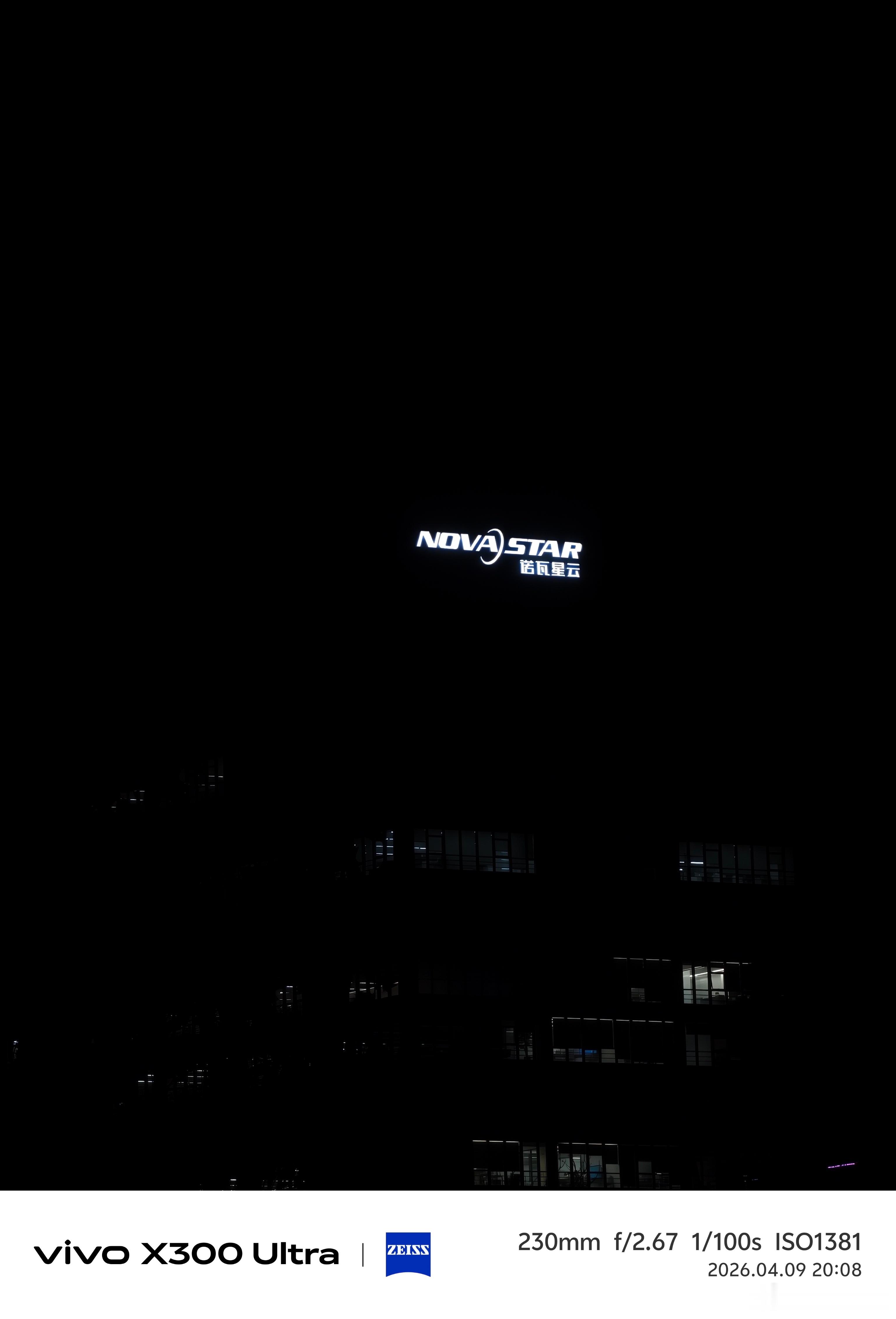 没有增距镜的话vivo X300 Ultra的230mm焦段的夜景表现依然能打拉低曝光,这这不就看清远处的楼上的发光字了。 西安·西安环普国际科技园