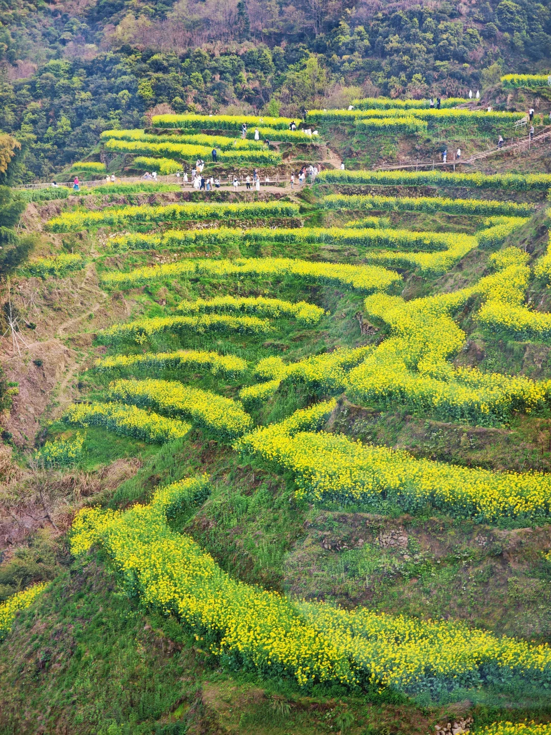 📸清明踏春篁岭,一期花海已谢,唯有二期高岭梯田仍漫山鎏金,把暮春的徽州酿成一首温柔的古风诗。