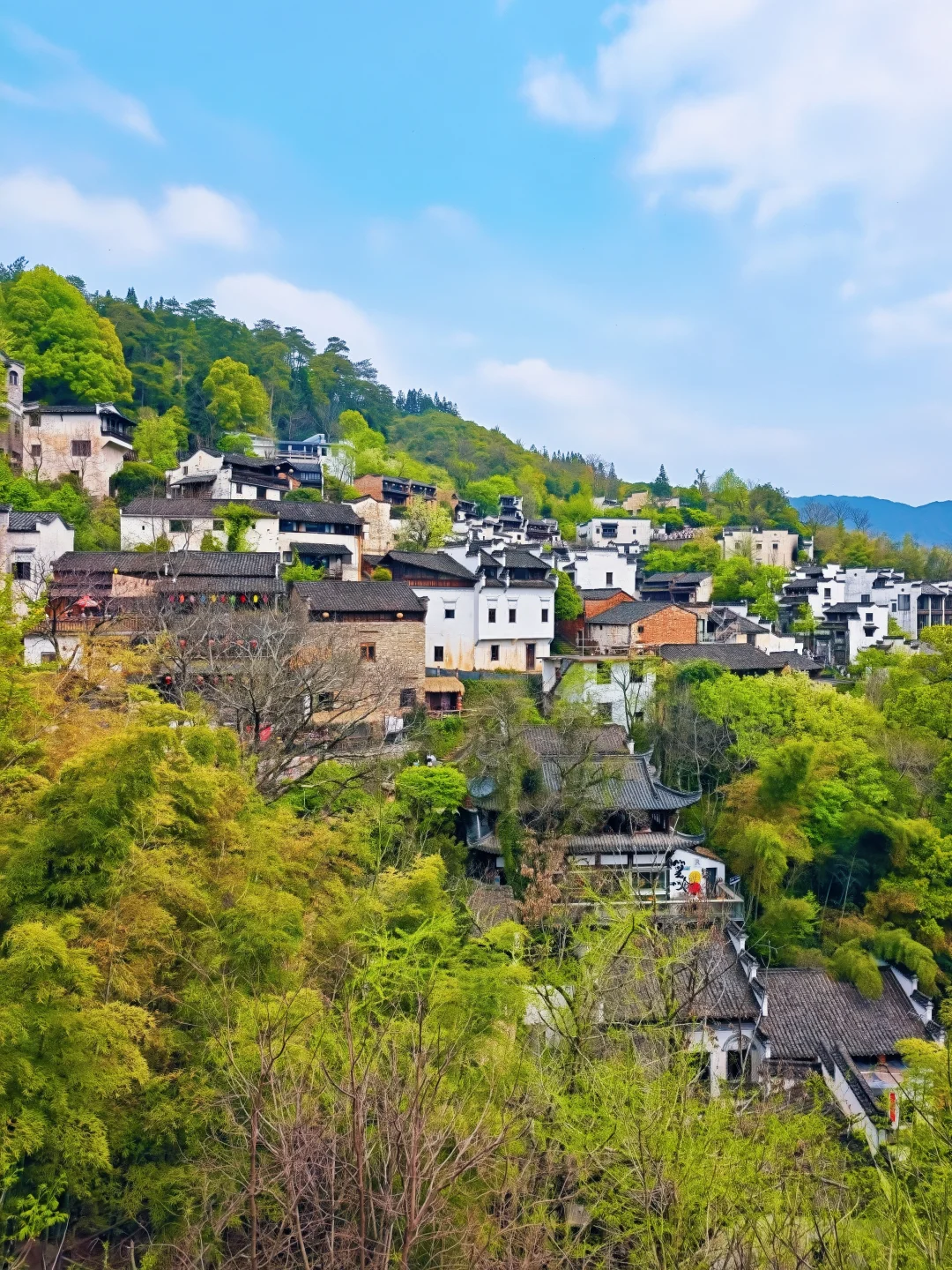 🏯中午抵达,乘A索道(古村索道)缓缓上山,一出站便踏入徽派古村的温柔里。白墙黛瓦错落有致,青石板路被晨露浸润,带着淡淡的湿气。沿天街慢行,木窗雕花藏着岁月,偶有炊烟从老宅升起,与山间薄雾交织,人间烟火气缓缓漫开。漫步花溪水街,溪水叮咚穿巷而过,水雾轻扬,身旁虽无盛花,却有草木清香,一步一景皆是江南的温婉诗意。