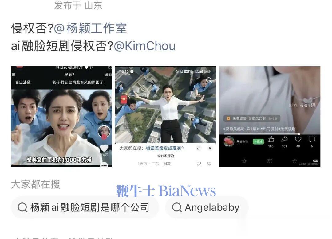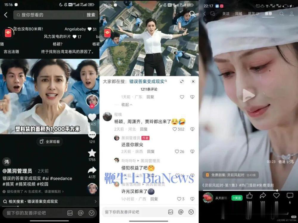 4月10日消息,一个名为@黑洞管理员的抖音账号上发布了一条AI视频,视频中的女主面容极像女明星Angelababy。该视频被网友们看到,认出来视频中的几个角色不仅像Angelababy,还与贾玲、许光汉、章若楠、佟丽娅等明星均有几分相似。