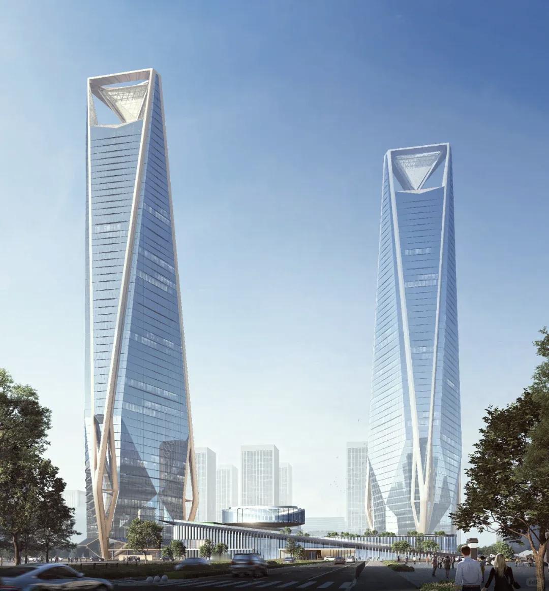 在功能布局上,项目打造垂直复合的城市综合体标杆,全面整合超甲级金融办公、精品商业、高端酒店等核心业态,同时在建筑内部错落嵌入空中花园展厅、星空剧场、漂浮观景台、空中餐厅等多元特色空间,打破工作与生活的场景边界。区别于传统封闭商业布局,项目裙房以开放式立体公园、城市客厅为定位,通过连廊、绿坡、下沉广场的多层次设计,与周边燕尾洲公园、科技文化中心形成贯通的生态通廊,将城市公共空间与地标建筑深度融合,让重大城市建设项目真正实现与市民共享。