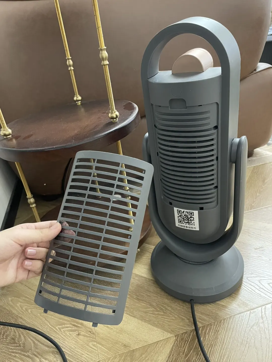 我眼睛容易干涩,所以暖风机从来不敢正对着脸吹,一般都放在沙发侧边用,之前特意挑了个机身偏高的,想着伸手就能碰到热风就行,但实际用着发现,它的出风口比我想象的小很多,网格的最上和最下的位置基本不出热风,我得特意凑过去、够着位置才能感受到热气。看了好几款,基本都是平行的风向,那阵子都快被暖风机彻底劝退了。