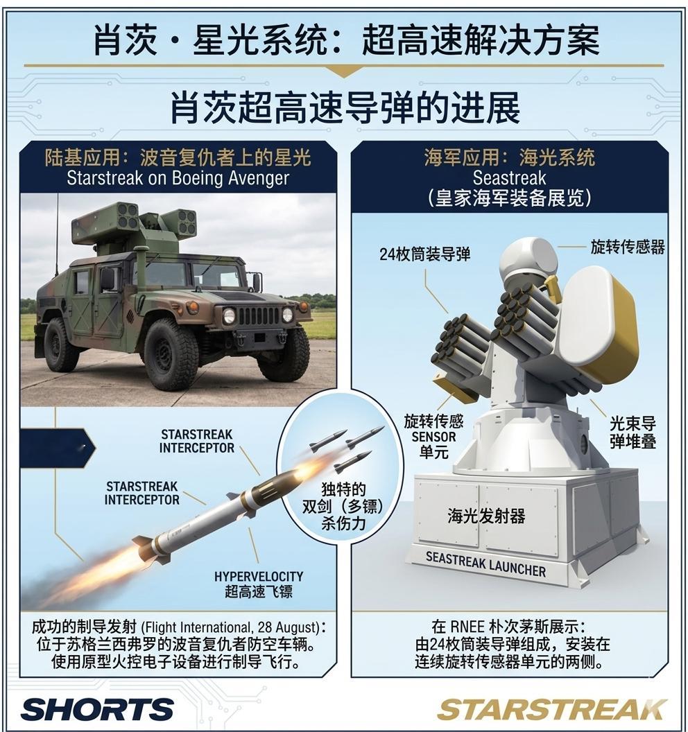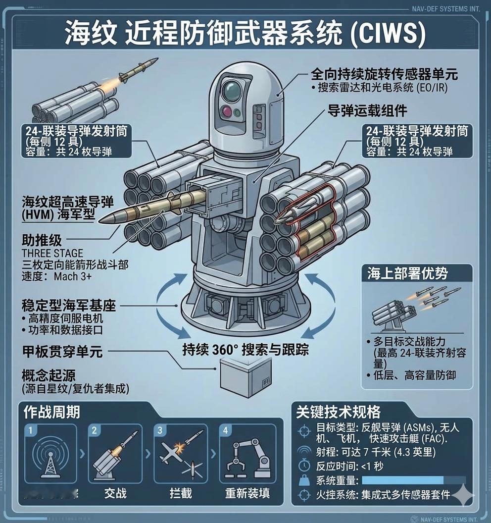 “SeaStreak”近程防御武器系统(CIWS)计划采用“星光🌟”HVM超高速近程防空导弹(中文版,图5;英文版,图6),左右两臂各携带12枚,共计24枚;飞行速度3马赫+;最大射程约7公里;装备雷达和光电传感器;系统全高约3.38米;目标重量为1吨。