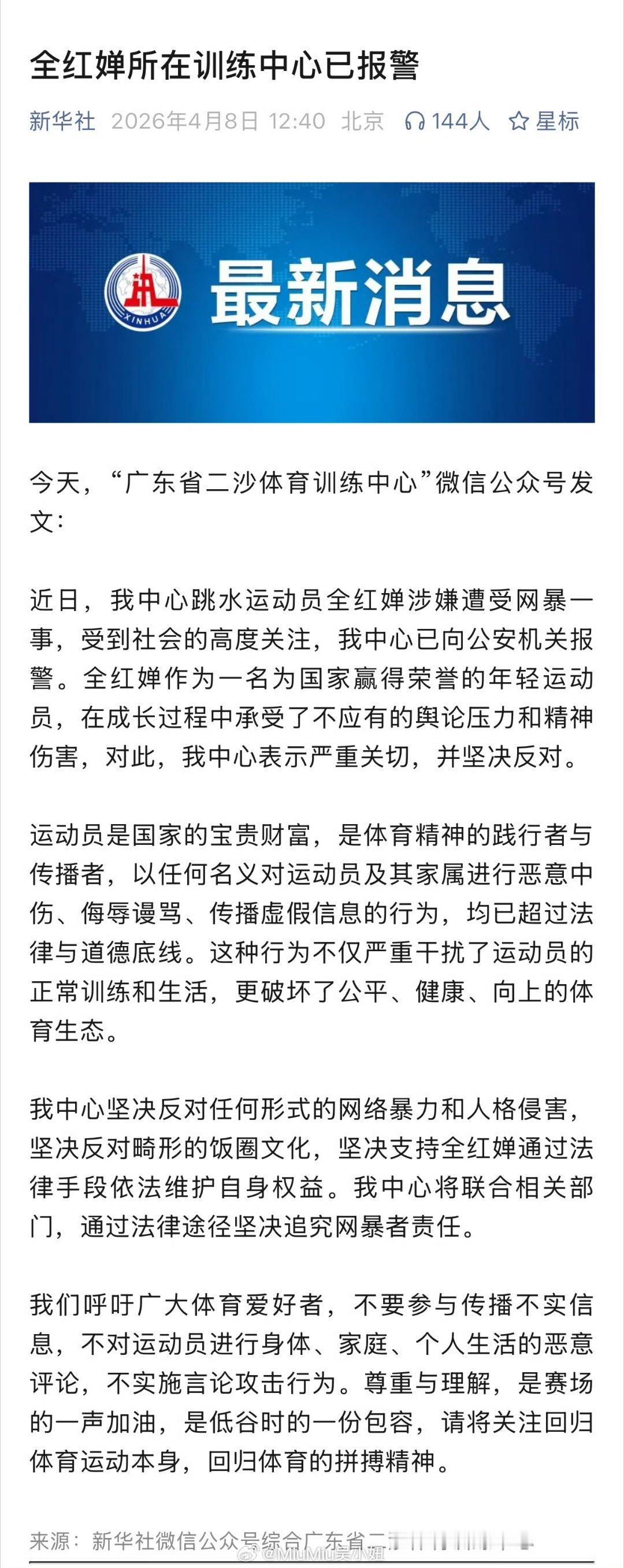 男子微信群多次侮辱全红婵被拘广州公安局拘的好啊!现在网络舆论烂成啥样了,对世界冠军,还是小女孩都这么恶毒?个个行业领域都搞这种敌对针对小圈子该杀鸡儆猴咯~网传徐某是图三的责任编辑~?孰真孰假估计会有人扒出来~如果是真的,人品这么烂还当什么记者编辑~?新闻报道这碗饭别吃了!央妈出手给丫泼了!!!