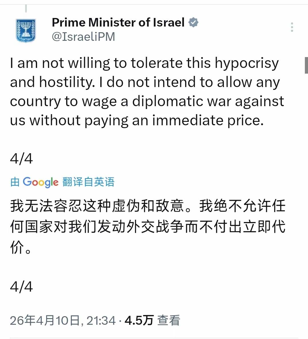 内塔尼亚胡太狂妄了,他的逻辑非常清晰:“顺我者昌,逆我者亡”。他将批评者定性为“攻击以色列而非恐怖分子”,试图占据道德高地。但这也暴露了以色列在当前国际舆论环境下的焦虑与孤立——当“最有道德的军队”需要靠驱逐外交官来维护尊严时,这本身就是一种外交失败的信号。