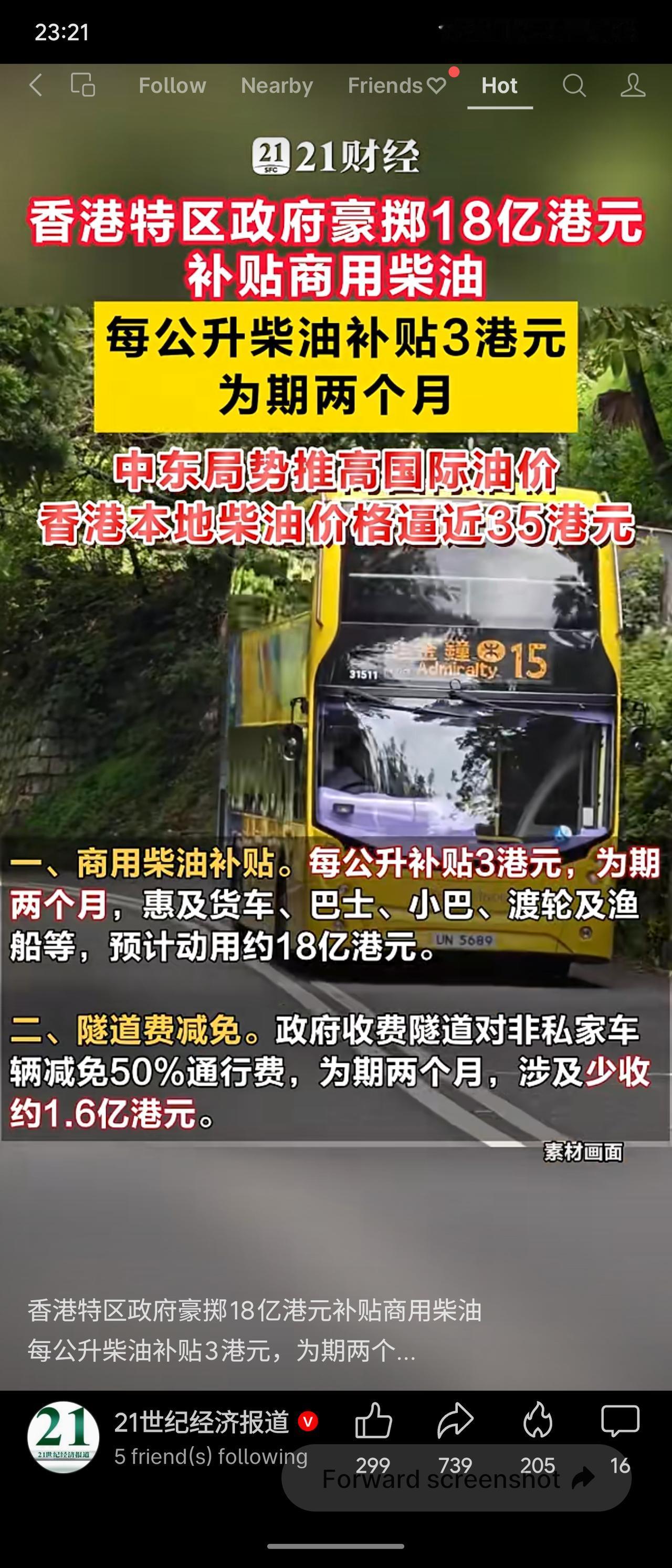香港特区政府因中东局势导致国际油价飙升(本地柴油价逼近35港元/升),宣布推出四项纾困措施:每公升补贴3港元、为期两个月,预计动用18亿港元;政府隧道费减免50%两个月(少收约1.6亿);设立工作组提速审批营办商申请;动态监察油价。整体看,补贴力度较大、覆盖货车及渡轮等关键运输环节,能有效缓解短期成本压力。同时配合价格监察机制,防范油企借机牟利,体现了精准、及时的应对思路,兼具民生关怀与市场规范。