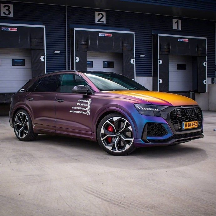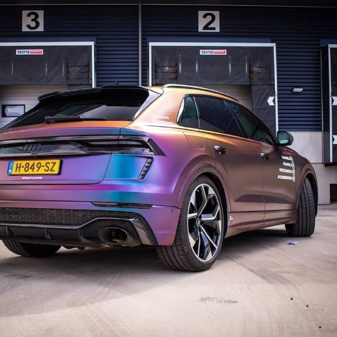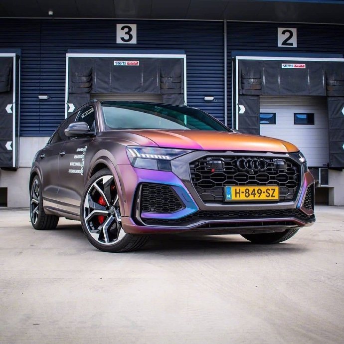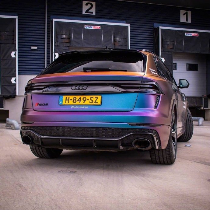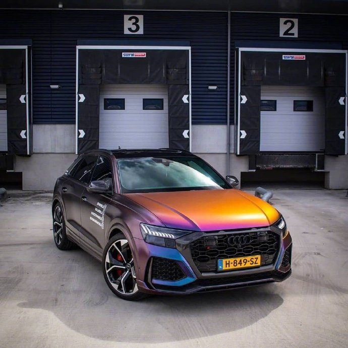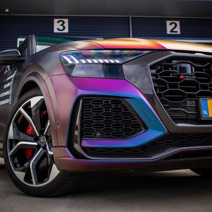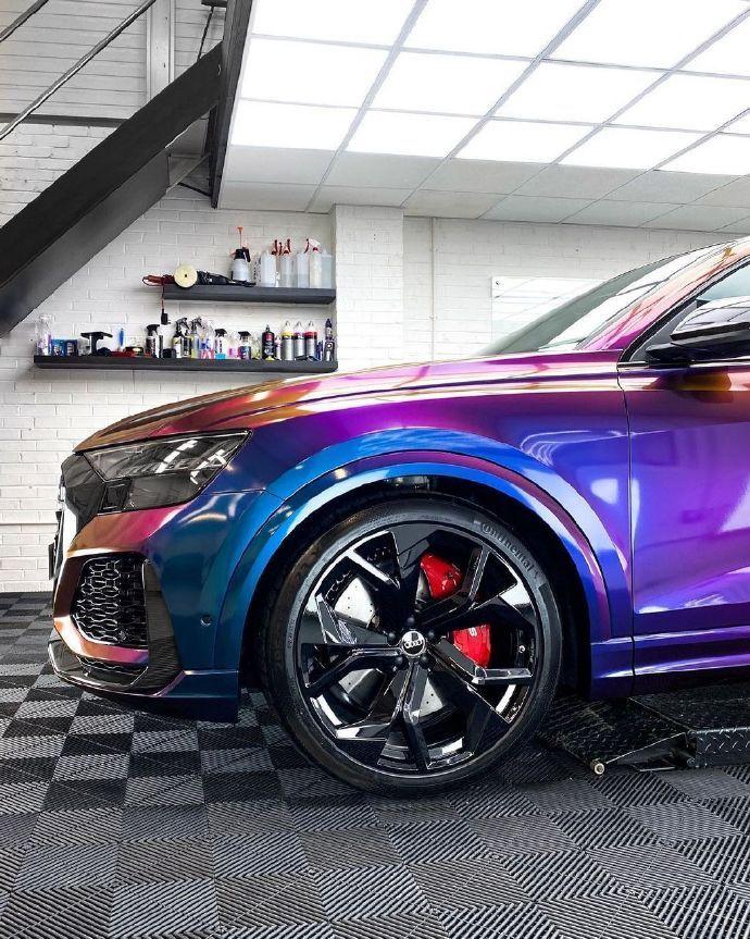 奥迪 RS Q8 堪称 “性能王者”,再配上彩虹色涂装,那视觉效果简直梦幻到飞起!它定位高性能 SUV,外观设计超赞。前脸多边形黑色中网,运动气势拉满,两侧倒三角形导流口动感十足。车身线条饱满,凸起的线条力量感爆棚。简洁犀利的头灯,内部结构精细,点亮后效果超出色。侧面硬朗腰线,轮廓舒展,比例协调,倾斜黑色窗线自然流畅,车门凹面锋利,精致的后视镜加分不少。个性潮流的轮毂搭配红色卡钳,时尚运动感瞬间提升。车尾饱满硬朗,贯通式尾灯时尚立体,后包围也很运动。这样骚气的配色,回头率绝对超高!汽车改装